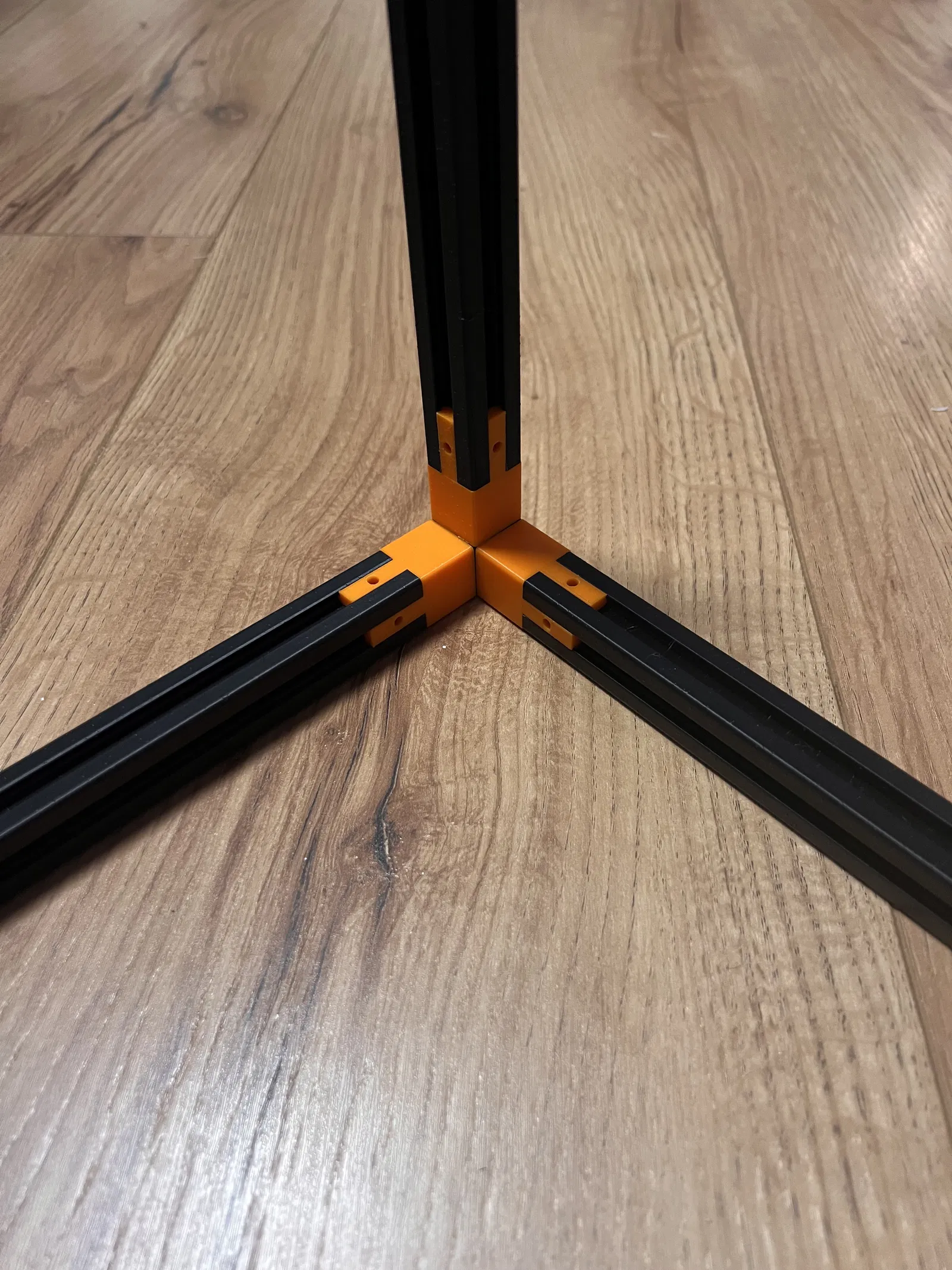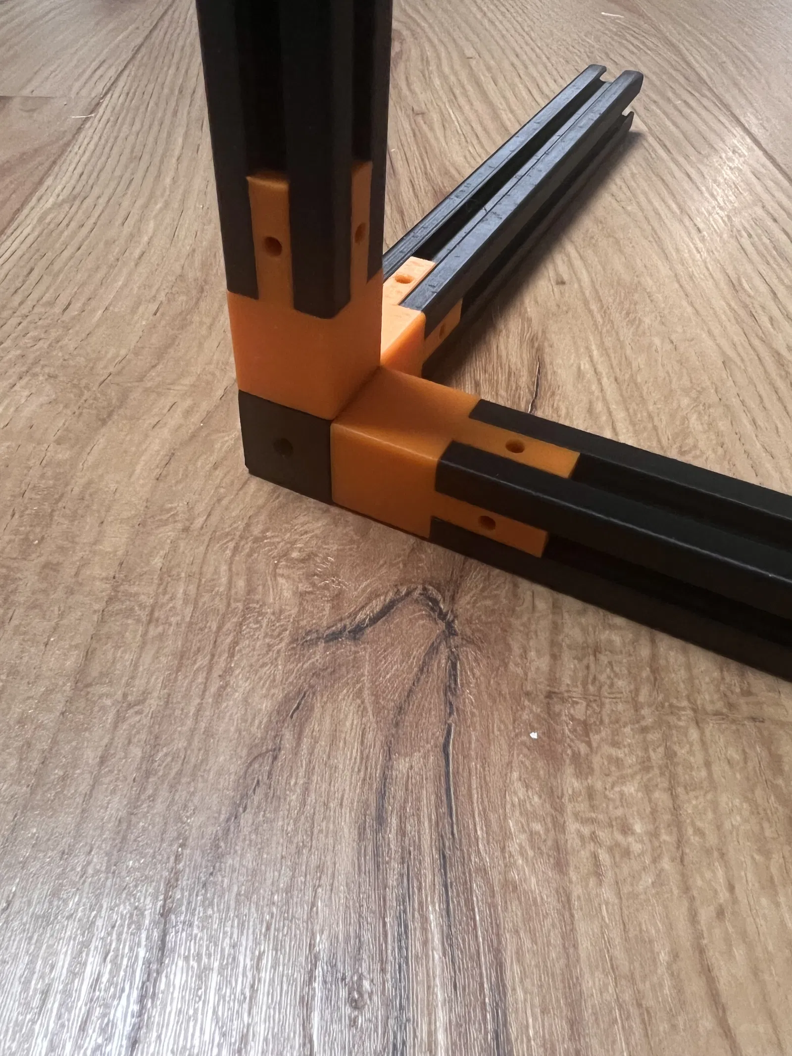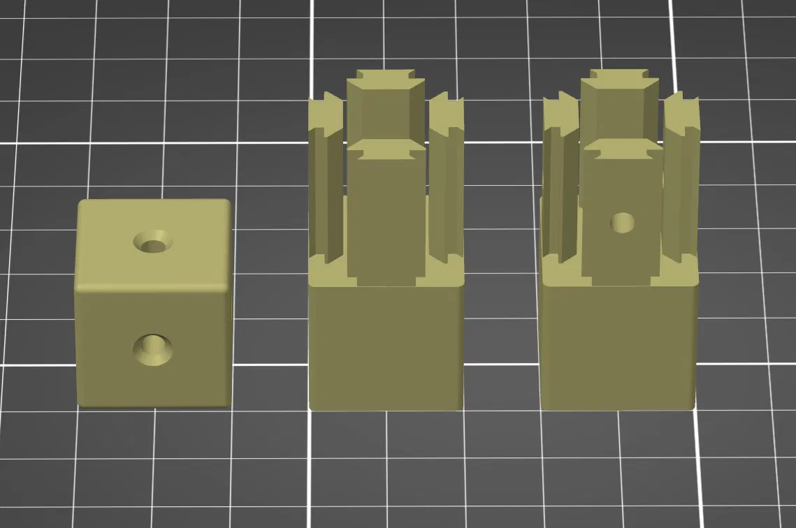 Tôi đã tạo ra một bộ phận đầu nối không có lỗ ở phần "ngón tay" vì nó khít chặt vào các thanh profile in 3D nhờ các lớp, không cần thêm ốc. Tôi cũng đã tạo ra để có kết quả đáng tin cậy khi in các thanh profile "dài" (20 cm - 25 cm).