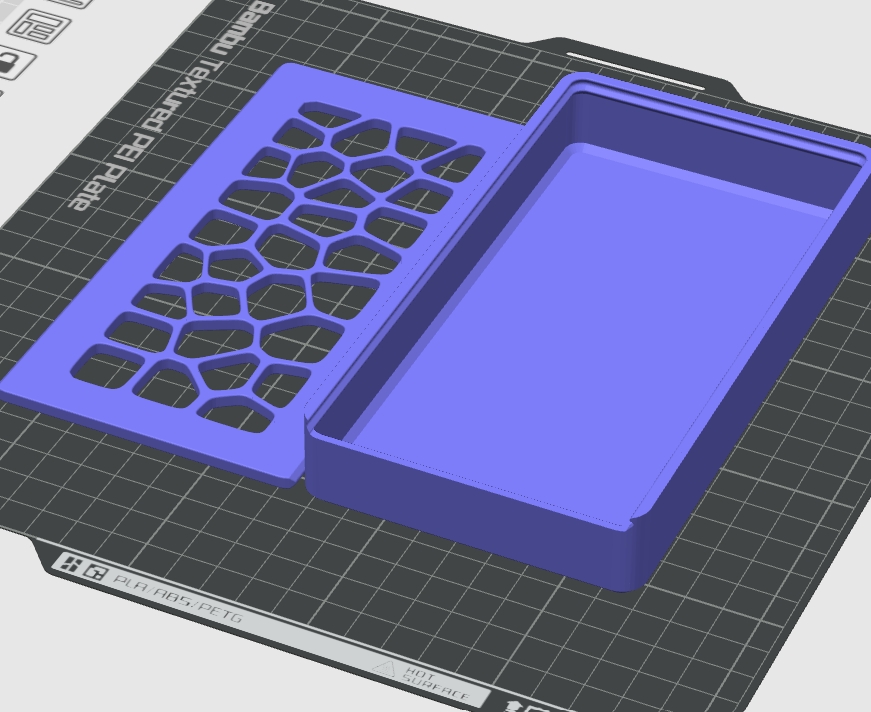 Cái hộp đơn giản này để đựng đồ đạc các loại, in ra dễ dàng và xài cũng tiện, không cần in support gì hết. Kích thước hộp là 174x94x27. Có 2 phiên bản: Bình Thường và Voronoi.