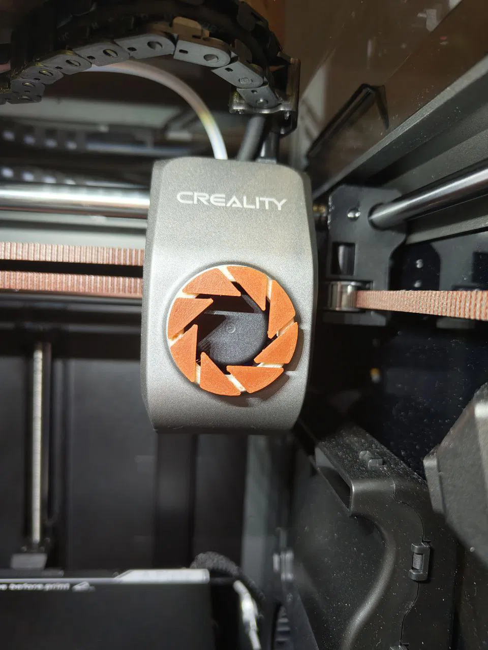 Bao che quạt cho hotend theo phong cách Aperture Science cho Creality K1/K1C. In logo úp xuống, không cần support. Có một lớp chính xác để bắt đầu vòng tròn, bạn có thể dễ dàng in 2 màu mà không cần CFS hay gì hết nha.