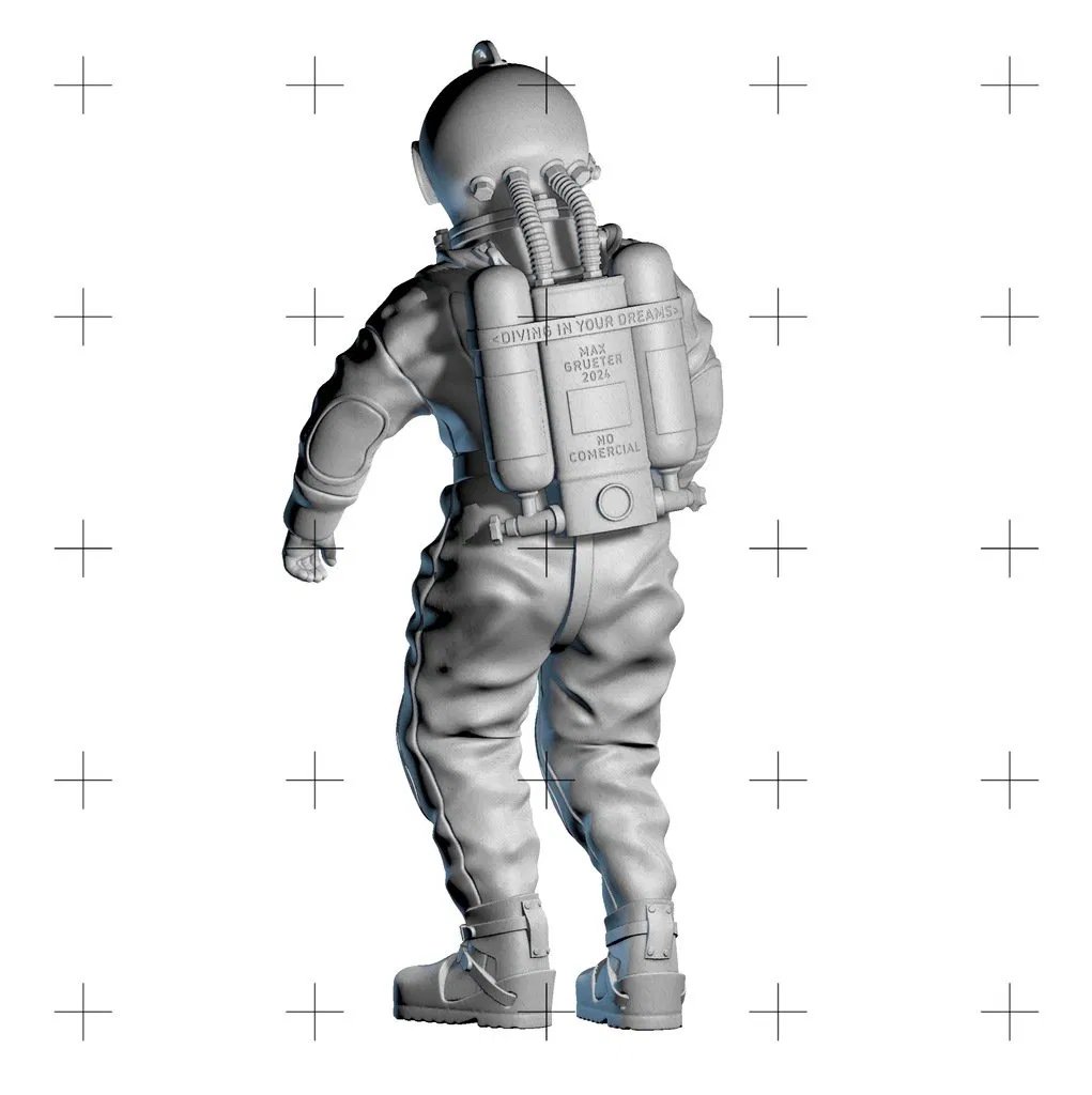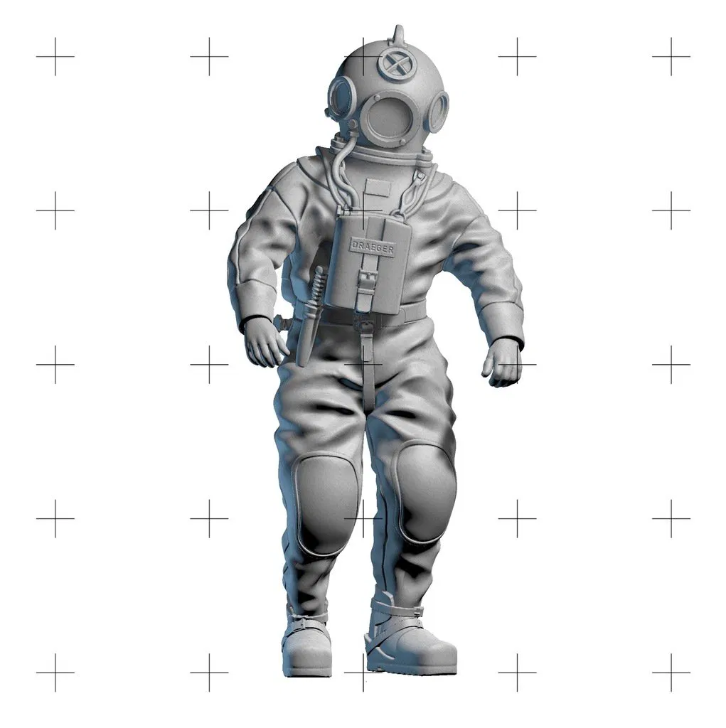 Mô hình 3D tượng thợ lặn cao 12 cm, phù hợp để in PLA. Một tác phẩm điêu khắc độc đáo, mang hơi thở của đại dương sâu thẳm, thích hợp để trưng bày.