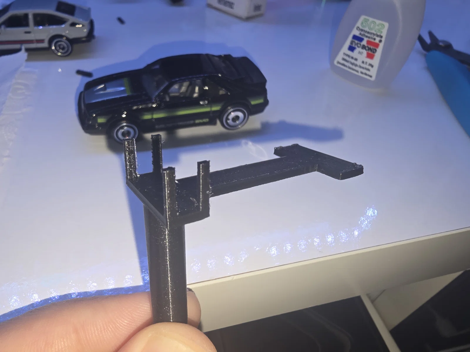 Chỉ cần in cái đế giữ xe mới rồi gắn vô thanh cũ của bạn, hoặc in luôn cái thanh mới có chốt định vị để gắn chúng dễ hơn. Dùng một ít keo siêu dính (không bắt buộc) để đảm bảo thanh không bị rớt cái đế giữ xe ra.