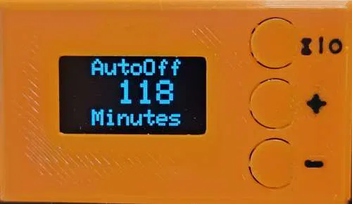 Thay đổi cho AutoOff: Hiện kích hoạt bằng cách nhấn và giữ nút "+" (nút giữa) sau đó nhấn nút Bật/Tắt cho đến khi "AutoOff" xuất hiện trên màn hình.