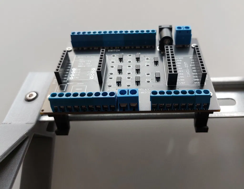 Giá đỡ gắn trên thanh ray DIN, dùng để gắn các dự án của bạn lên thanh ray. Có hai loại: thẳng và có rãnh cắt, với hai độ rộng 7mm và 10mm. Có lỗ cho ốc M2. Thiết kế dựa trên mẫu Thingiverse.