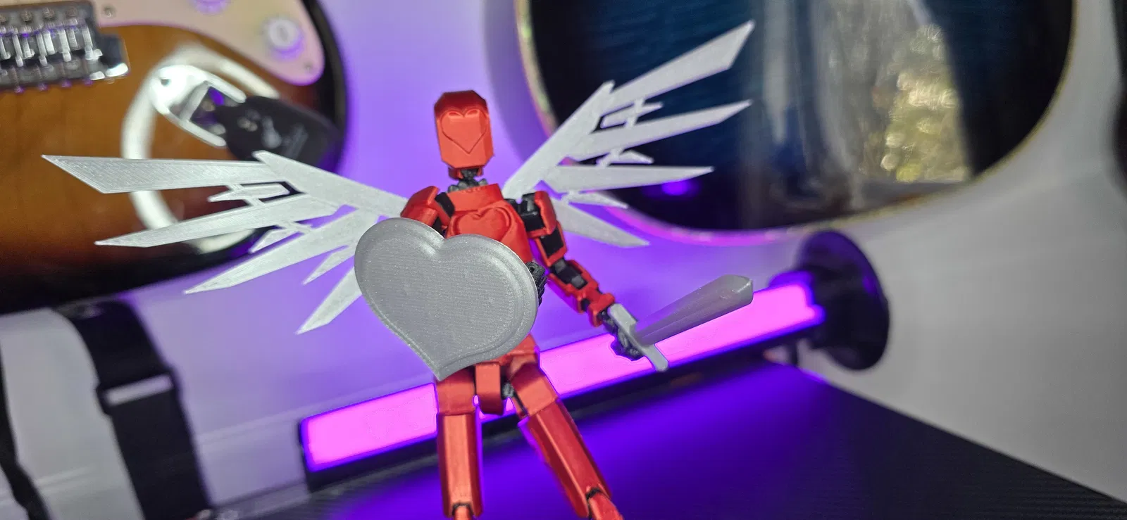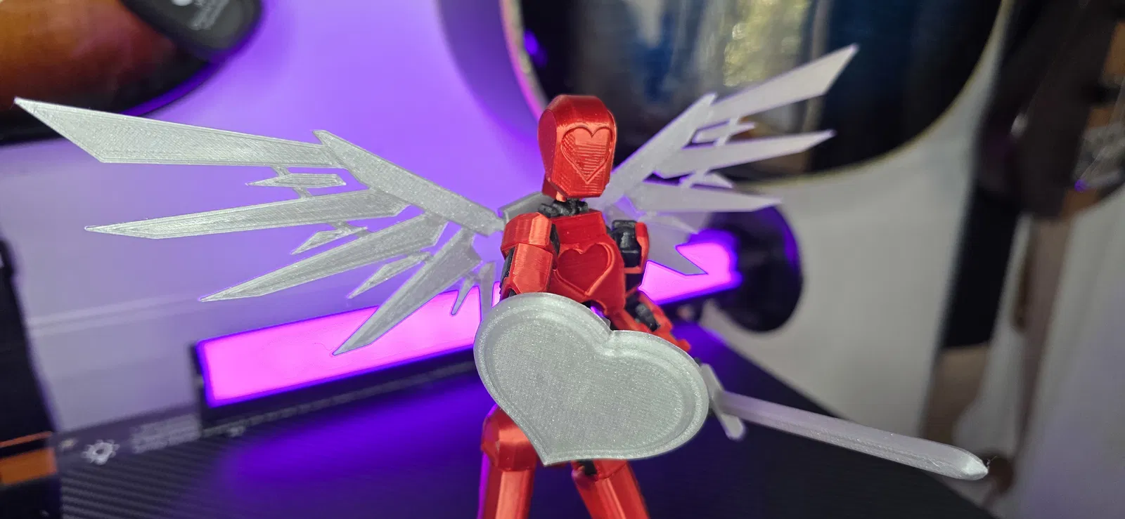 Đây là phiên bản remix của mẫu Dummy 13 gốc cho ngày Valentine. Tôi đã mô hình hóa phần thân và đầu để có trái tim. Ngoài ra, tôi đã thêm một bộ cánh robot thiên thần kèm ba lô. Tôi cũng thêm một cái khiên hình trái tim tình yêu. Bạn có thể tham khảo link để lấy kiếm gốc từ Soozafone.
