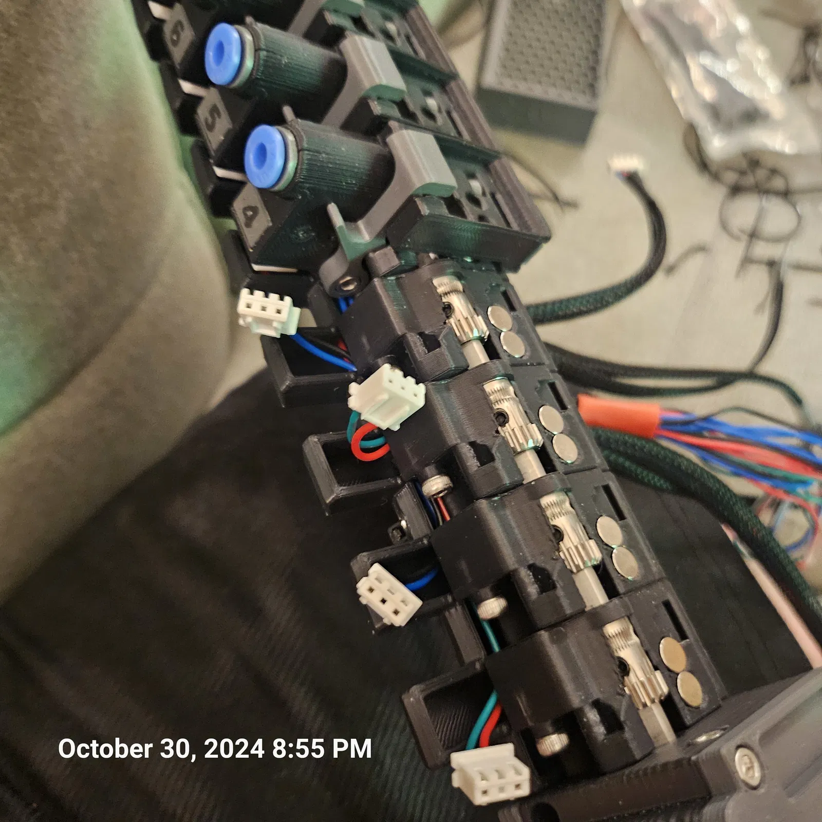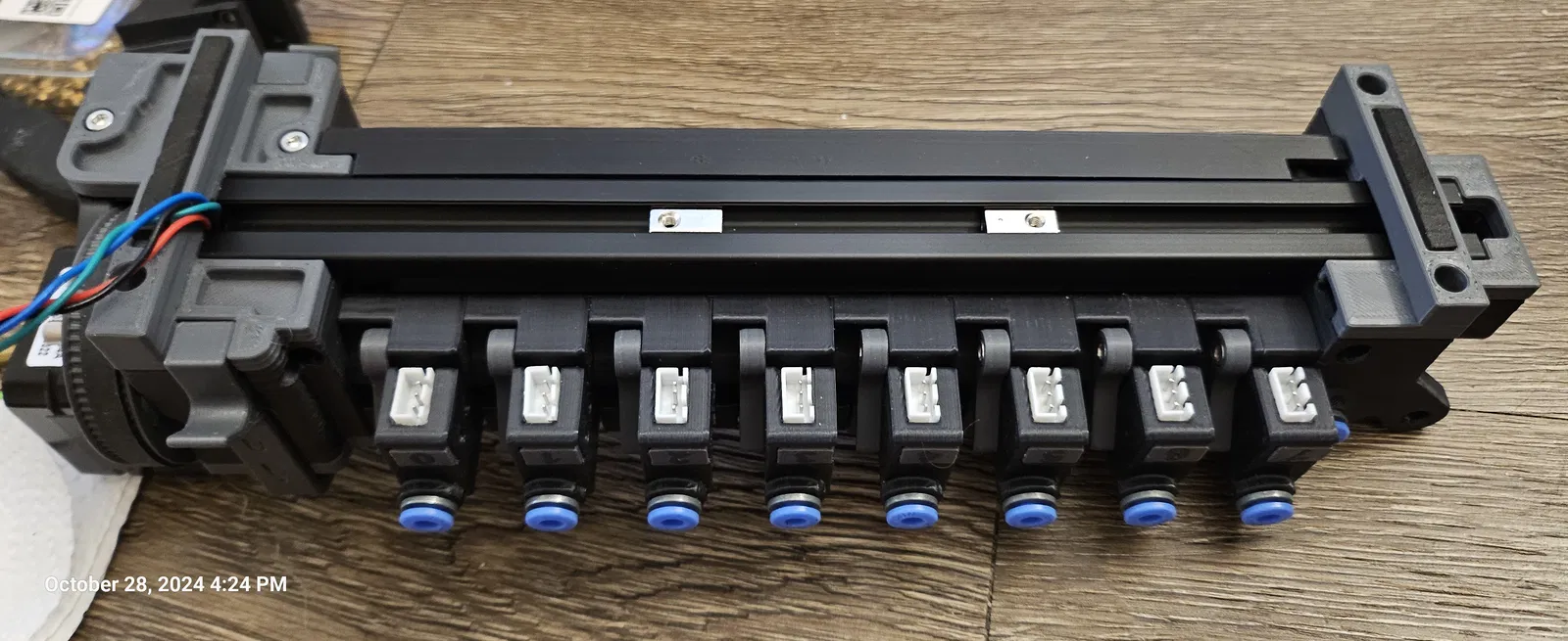 Cảm biến Gate sẽ xài micro switch theo BOM với đầu nối JST-XH 3 pin female cho 8, 9 hoặc 10 gate. Có cái jig để giúp hàn, sẽ cần nghiêng các chân ngoài để kết nối, vặn ốc vào công tắc trước bằng ốc tự tapping M2x10mm rồi cắm JST-XH với lẫy hướng lên, nó sẽ khớp vào các rãnh ở bên hông, cái này sẽ tạo ra Gate Sensor. Sẽ cần Base, Filament Path làm giống bản gốc & thêm 1 viên bi 5.5mm, Gate Sensor, 2 con ốc tự tapping M10x10mm, lẫy gắn với ốc M3x12mm SHCS bằng cách vặn nó vào đế và chỉ cần trượt lẫy qua rồi gài vào filament path. Cái mount che Gate sensor sẽ cần 2 ren nhiệt M3 rồi luồn vào thanh nhôm. Cái cover sẽ xài 2 con ốc M3x16mm SHCS và cần siết chặt vừa đủ để không làm nứt cover. Dễ hơn khi gắn cover và đi dây rồi mới gắn tất cả các gate, cũng sau khi gắn hết gate, nới lỏng cover ra một chút để đảm bảo dây cho đầu nối JST-XH không bị dồn lại bên dưới, dùng tua vít dẹp nhẹ nhàng nhét dây lại để Filament Path có thể di chuyển lên xuống.