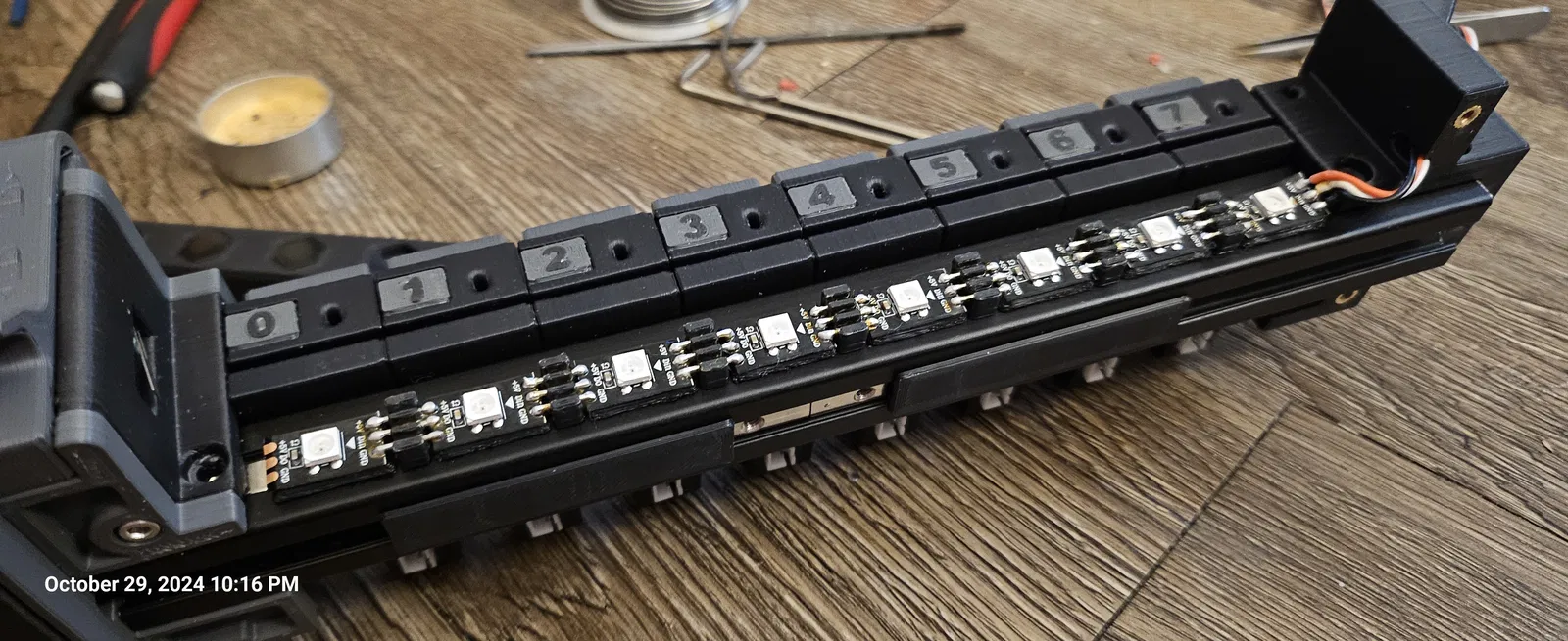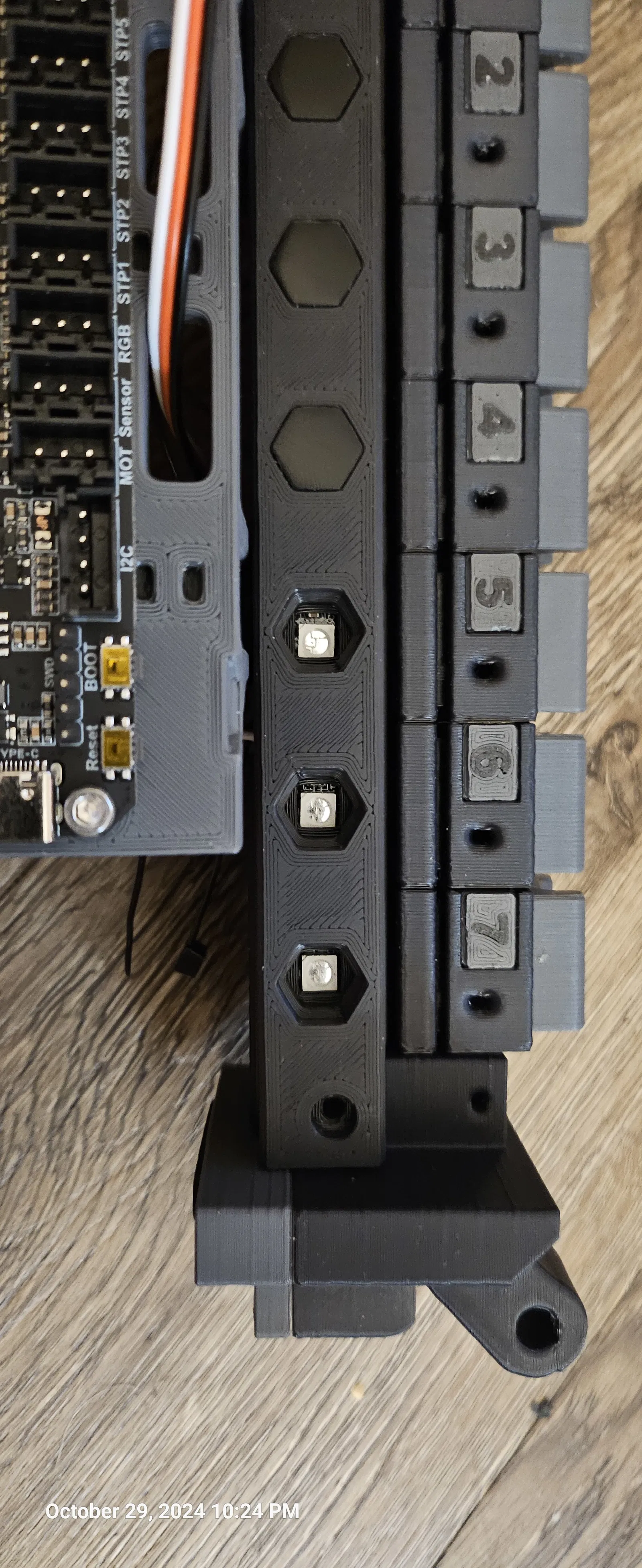 Cái mount đèn LED RGB để xài với dải đèn LED RGB cho 8, 9 hoặc 10 gate, cắt và dán vào các khe rồi hàn lại với các khe cho dây, mình dùng dây đồng 18 gauge không bọc vỏ, rồi luồn vào thanh nhôm. Có cái End Bypass với khe để luồn dây qua. Nắp che đèn LED sẽ gắn bằng cách tháo 2 con ốc M3x8mm SHCS ra và thay bằng ốc M3x16mm SHCS. Có 2 kiểu mặt số khác nhau, mặt số Voron, và mặt số trơn. Kiểu 2 có thể xài plate tag số zin. Mình khuyên nên in bằng resin cho mấy cái này.