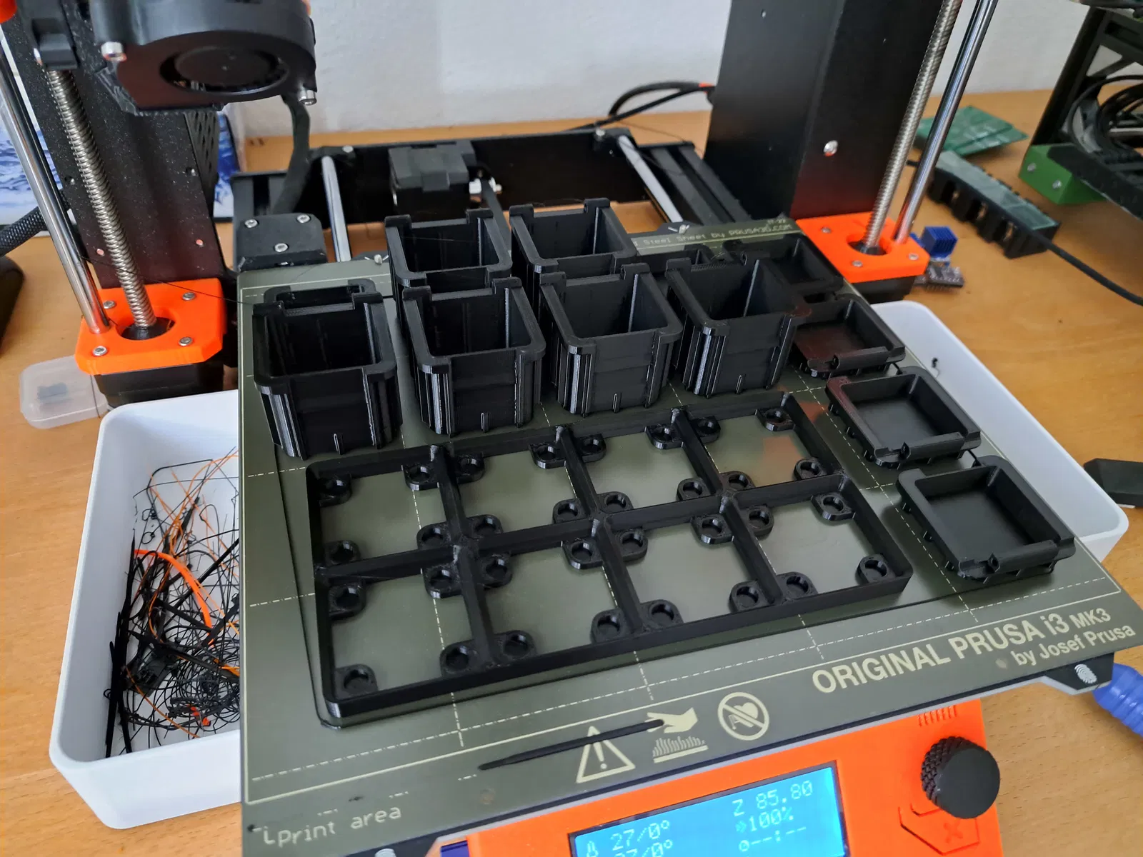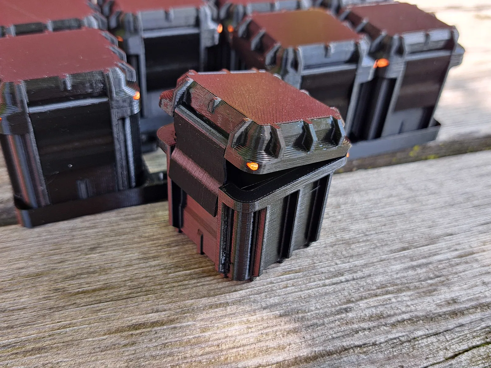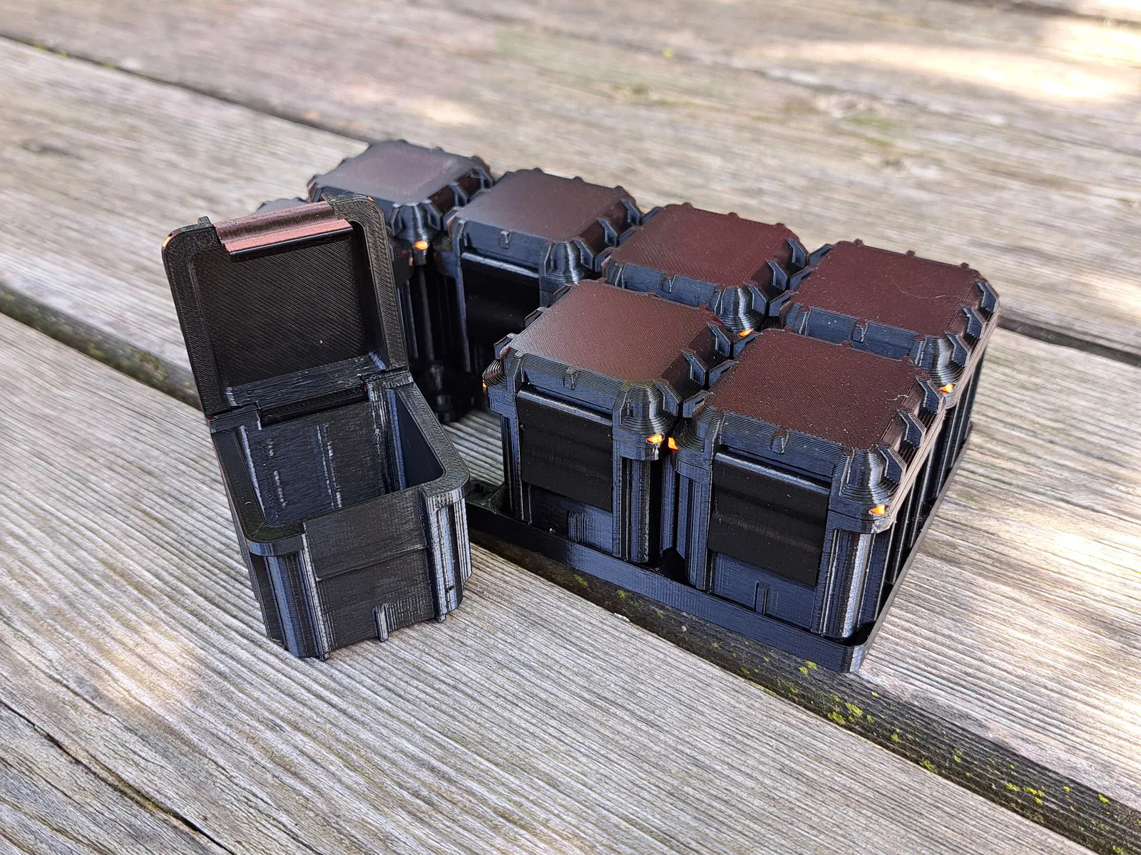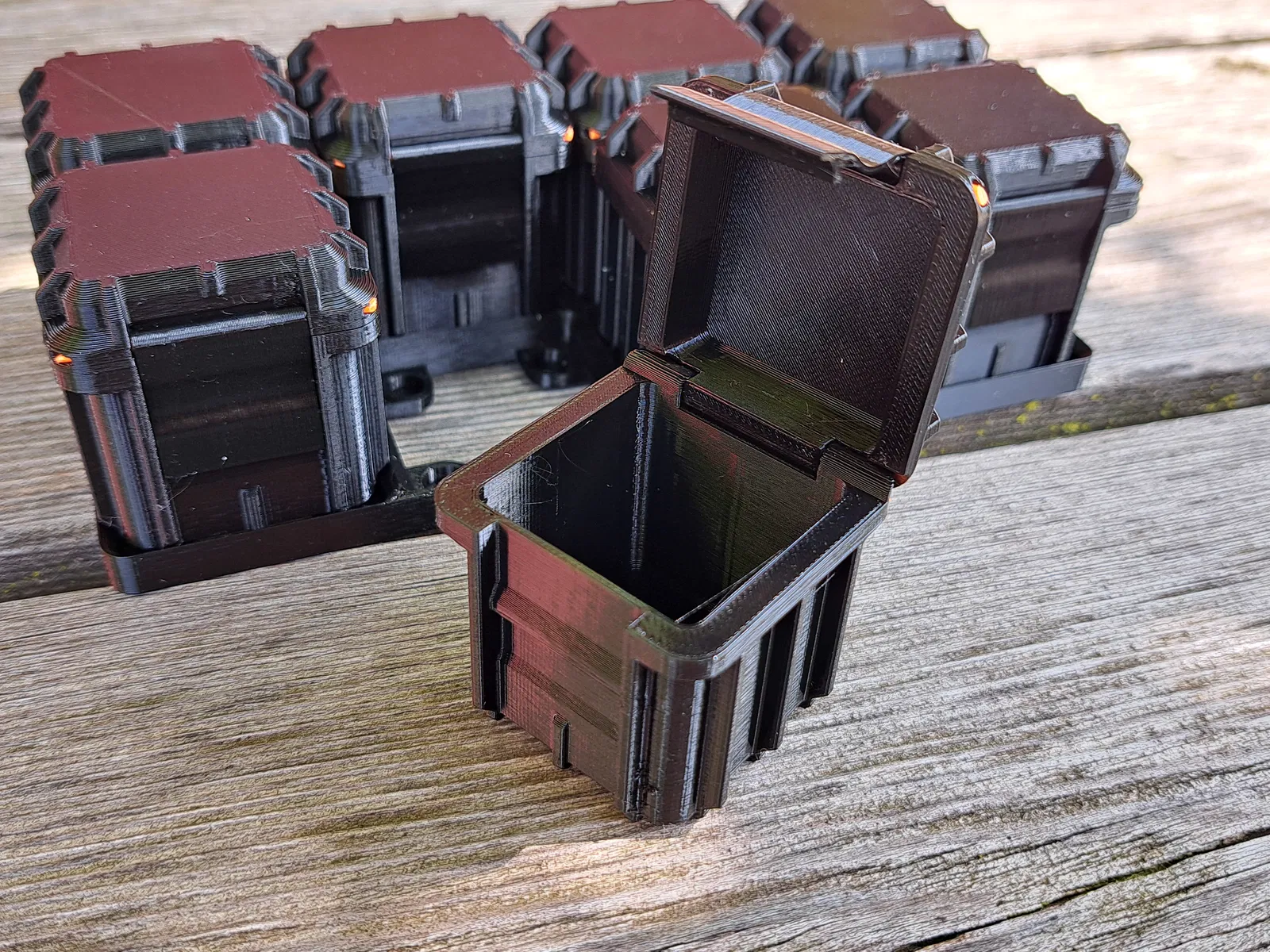Hộp cứng cáp dựa trên Gridfinity cho mọi nhu cầu của bạn. Hộp có khóa bấm và chỉ cần sợi filament 1.75mm làm chốt lắp ráp. In bằng PLA.