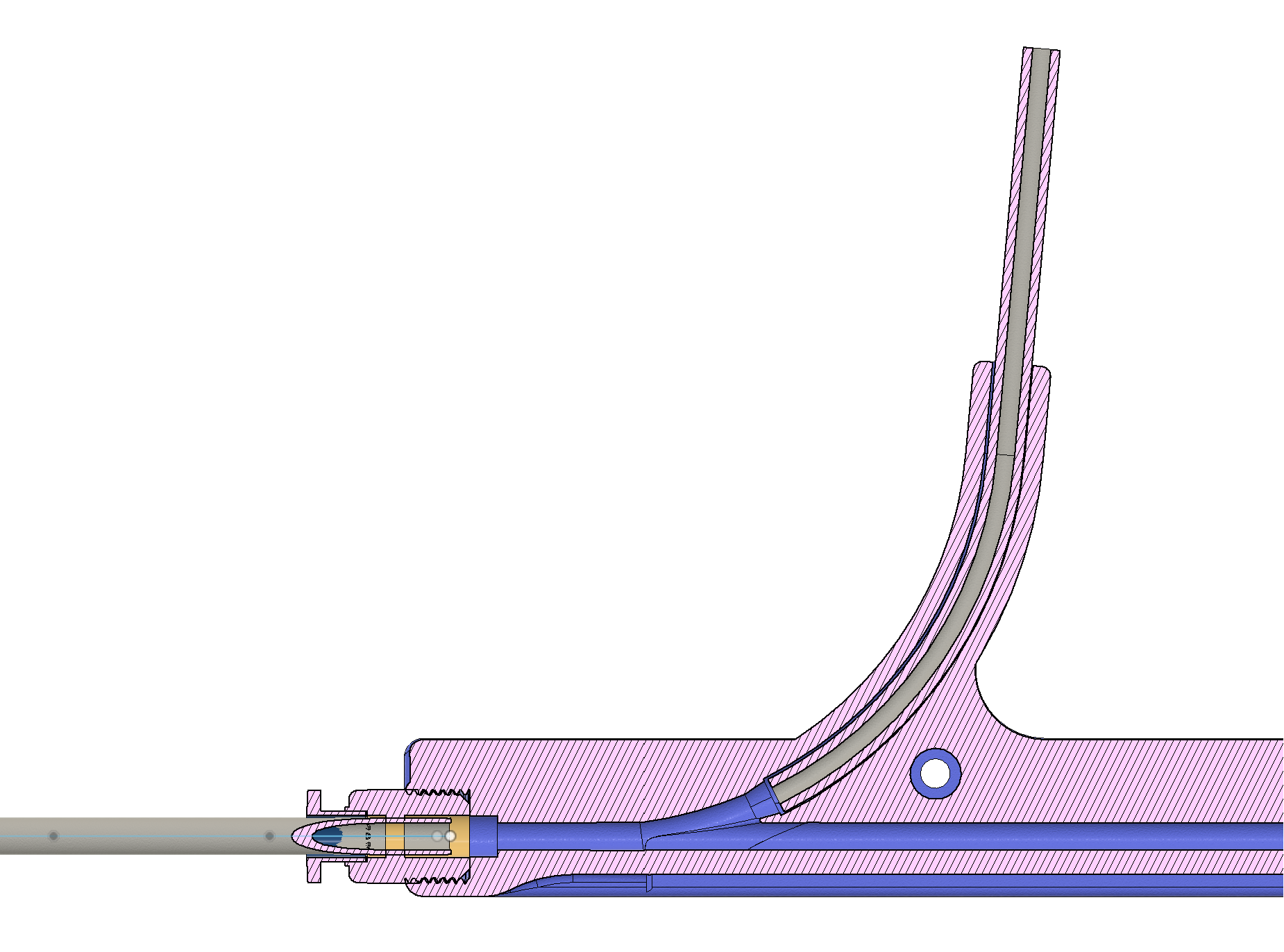 - Đặt một khớp nối vào đầu ống PTFE đi ra từ máy và gắn ống PTFE từ điểm đó, qua các bộ phận giữ đến ống nối.