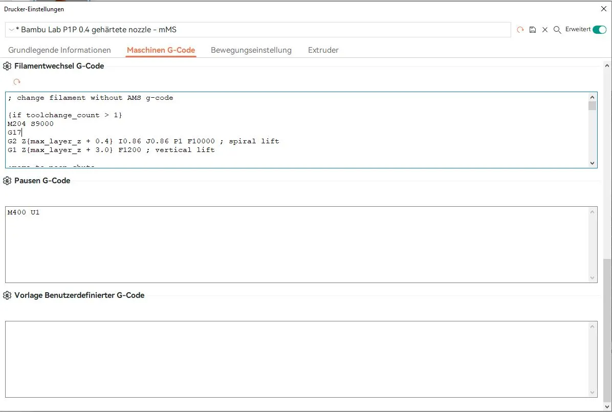 Để sử dụng trình cắt lát một cách chính xác, giống như AMS, bạn phải thay đổi tệp gcode thay đổi vật liệu trong cài đặt máy in. Tệp g-code tương ứng nằm trong "noAMS.txt".