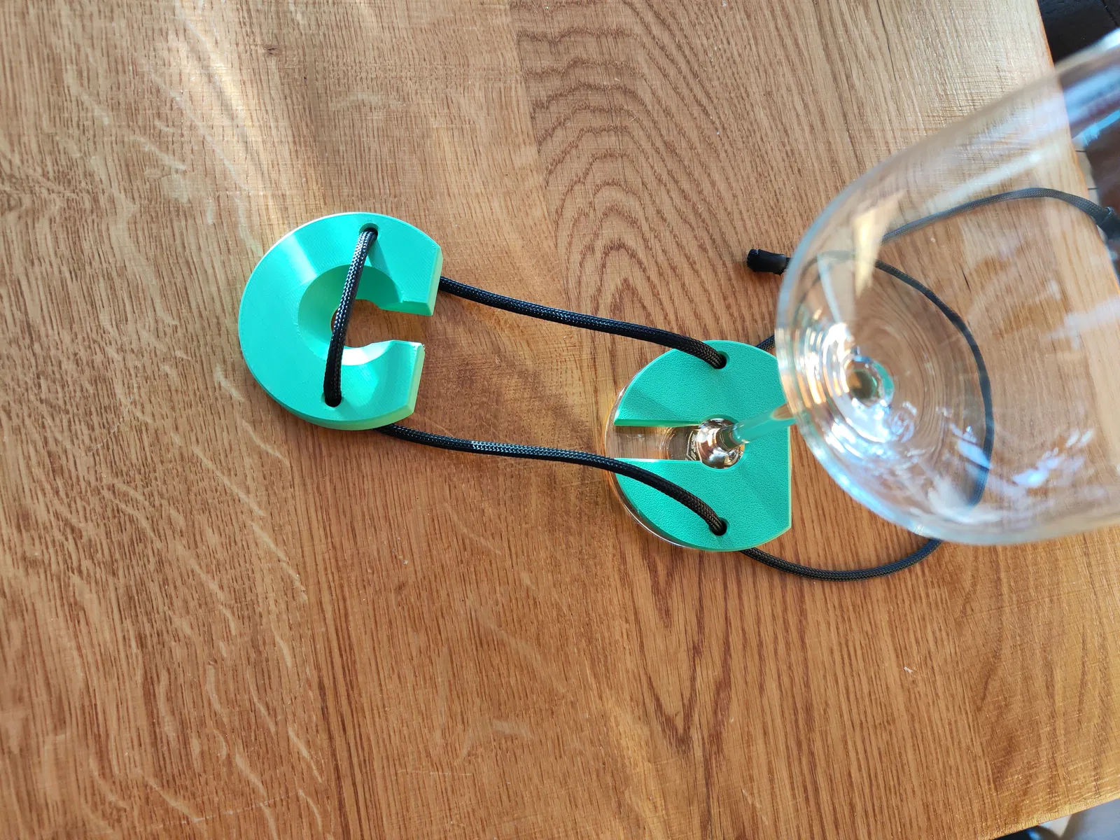 Đừng để phải cầm ly rượu vang khi đi bộ đường dài hay tiệc tùng! Giá đỡ ly rượu vang này giúp bạn rảnh tay, phù hợp cho cả ly vang trắng và vang đỏ. Dễ dàng lắp ráp chỉ với hai bộ phận in 3D, dây dù và ống co nhiệt. Tải về và tận hưởng!