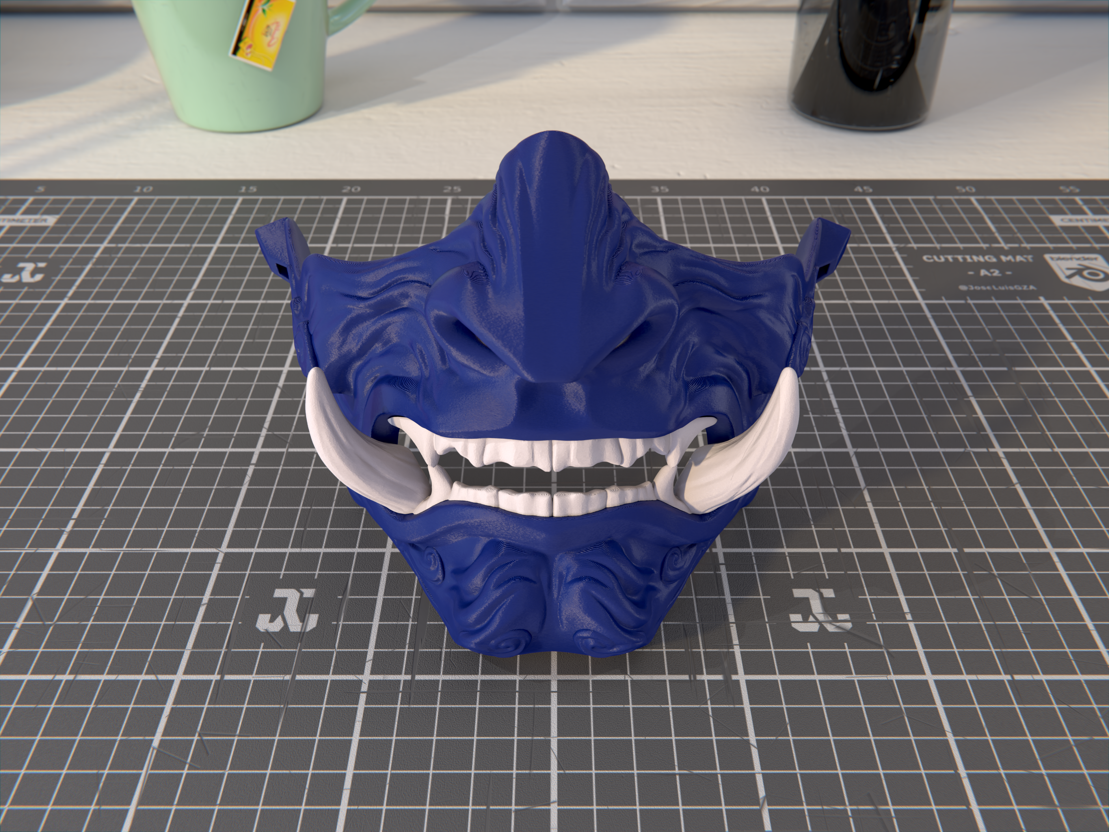 Phiên bản làm lại từ chiếc mặt nạ lấy cảm hứng từ samurai #2 của flioink. Răng và mặt nạ giờ đã tách rời để có thể in đa sắc mà không cần AMS hoặc tô vẽ.