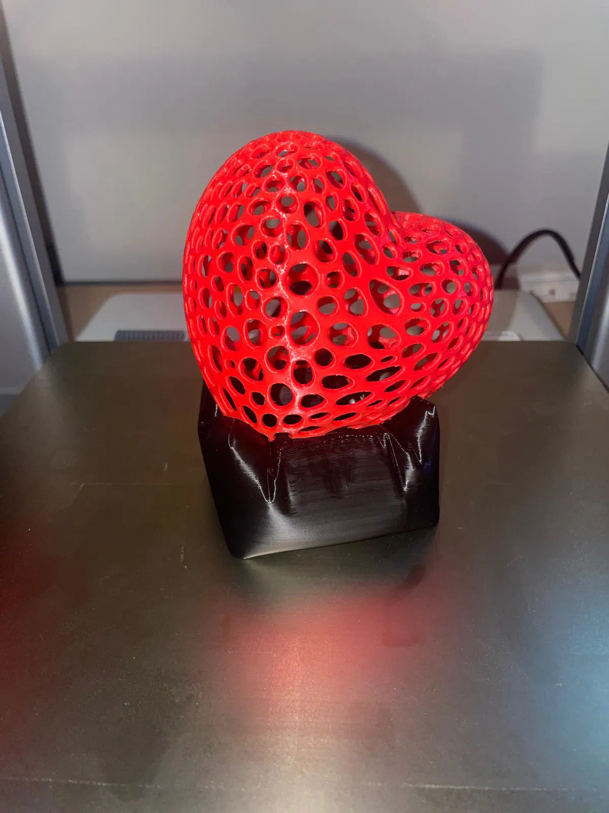 Chiếc đèn trà hình trái tim độc đáo này, được in nguyên khối bằng công nghệ 3D, mang đến ánh sáng ấm áp với họa tiết Voronoi tinh tế. Hoàn hảo làm quà tặng hoặc trang trí cho Ngày Valentine, tạo không gian lãng mạn.