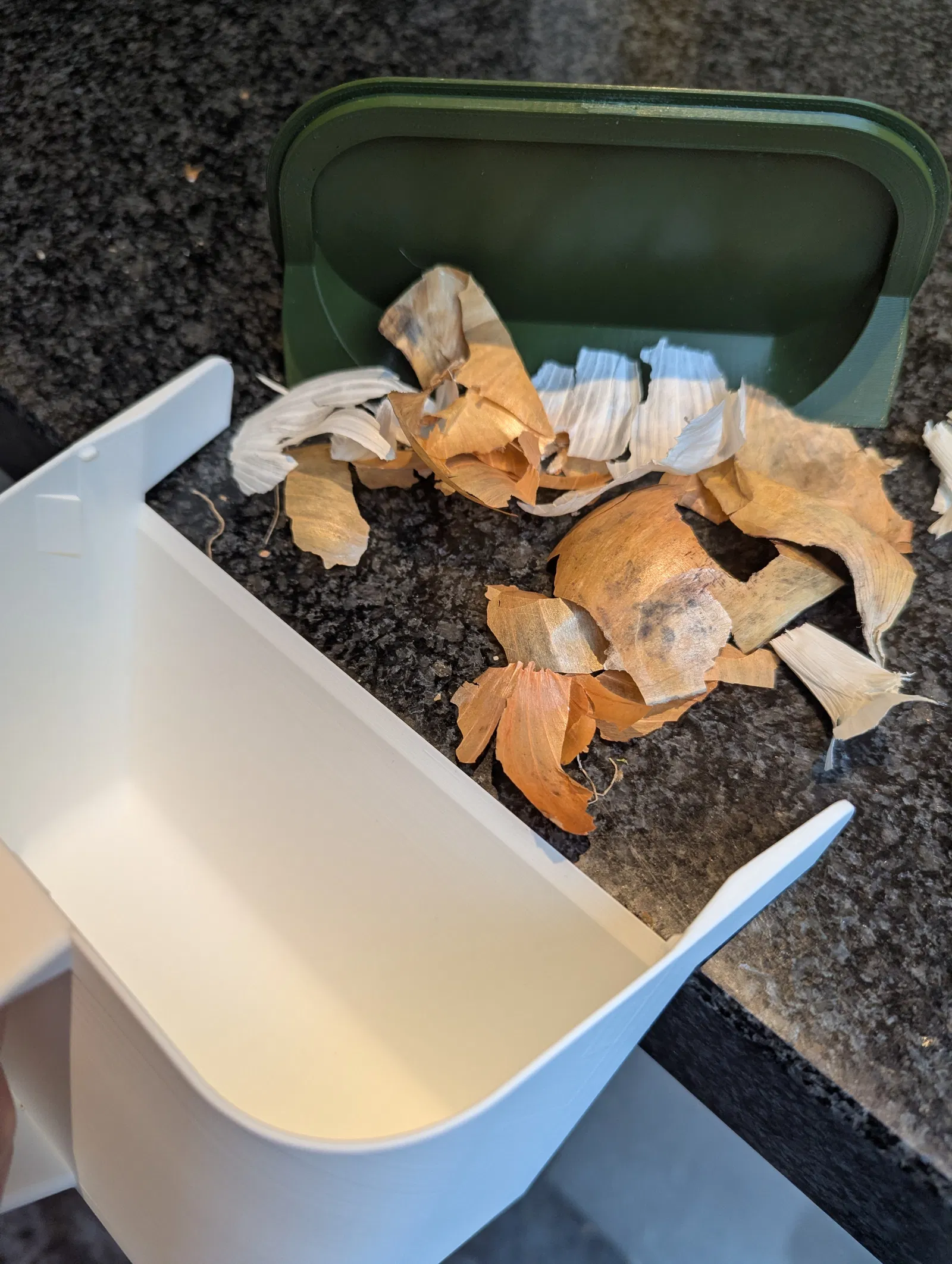 - Nắp đậy cũng có thể dùng như một cái cạp bàn để bạn lau sạch mặt bàn và đẩy rác vào thùng. Cái này làm tôi đau đầu để làm cho đúng, nhưng tôi không thể thiếu nắp đậy vì tôi dùng nó để đựng rác thải nhà bếp.
