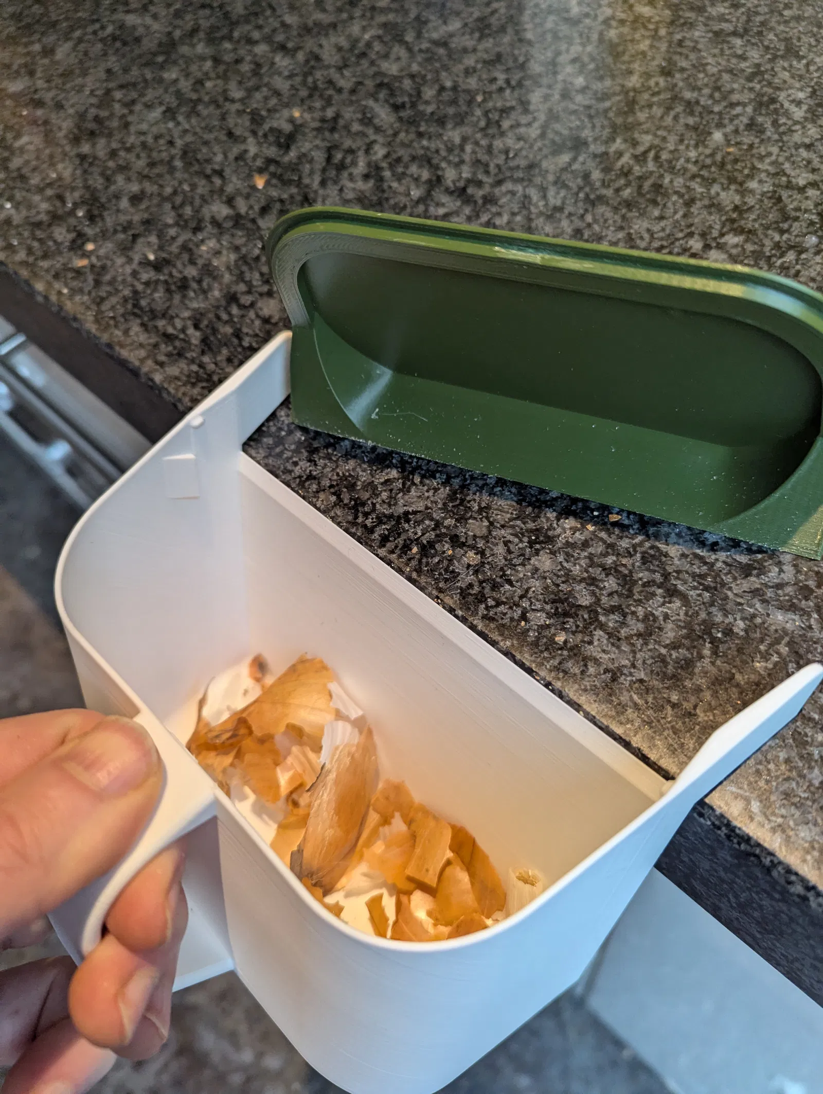 Cải tiến mẫu thùng rác vệ sinh mặt bàn, phiên bản mới có thêm vây và nắp đậy đa năng như cạp bàn. Dễ dàng dọn dẹp mặt bàn bếp, xưởng hoặc bàn máy in 3D. In nghiêng 45 độ không cần hỗ trợ, tối ưu độ bền và lượng filament.