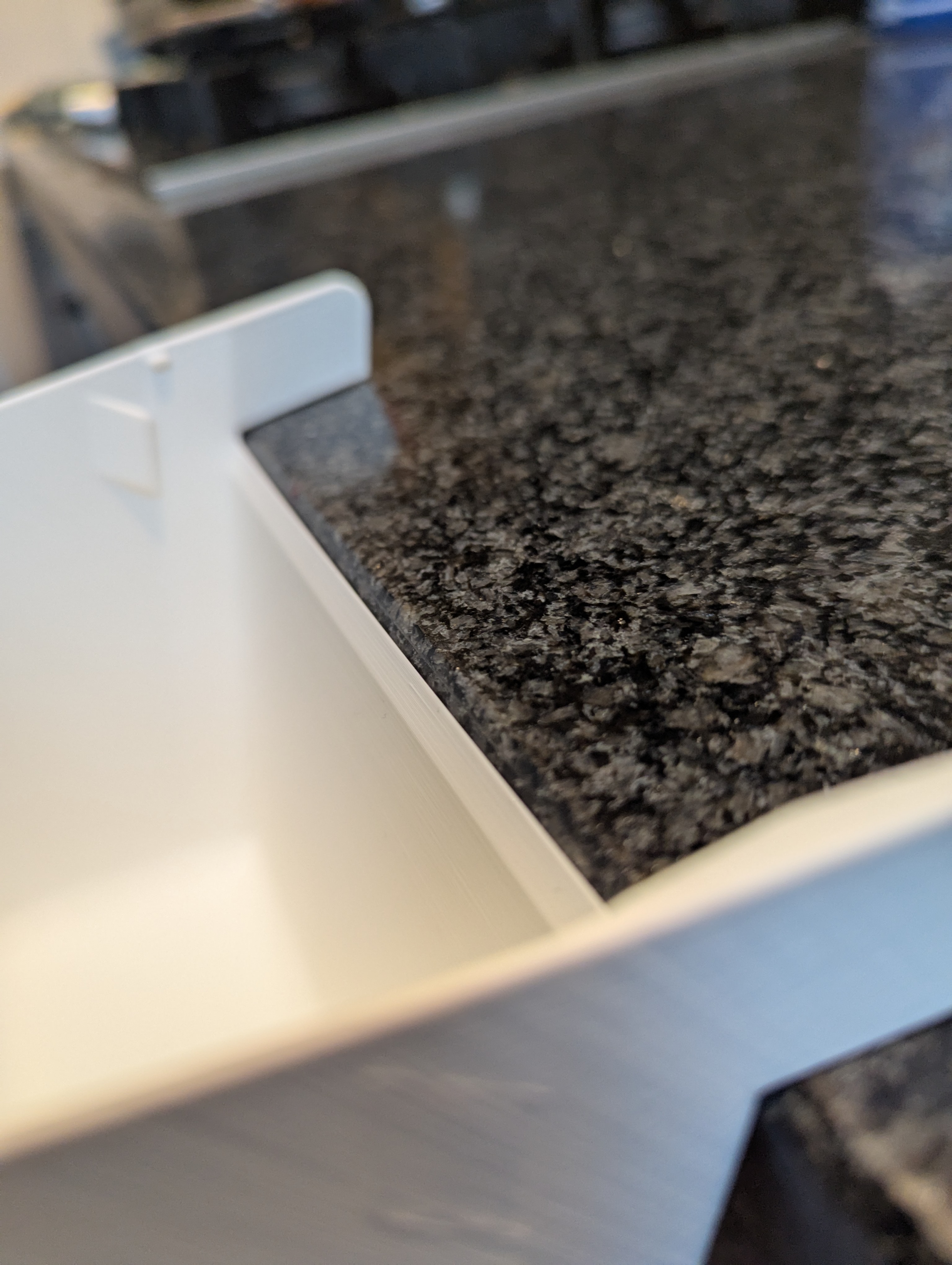 - Vì các cạnh của hầu hết các mặt bàn không sắc bén, nên cạnh của thùng rác thấp hơn một chút so với các vây. Chi tiết nhỏ này ngăn không cho rác lọt vào giữa cạnh mặt bàn và thùng rác. (xem hình cuối)