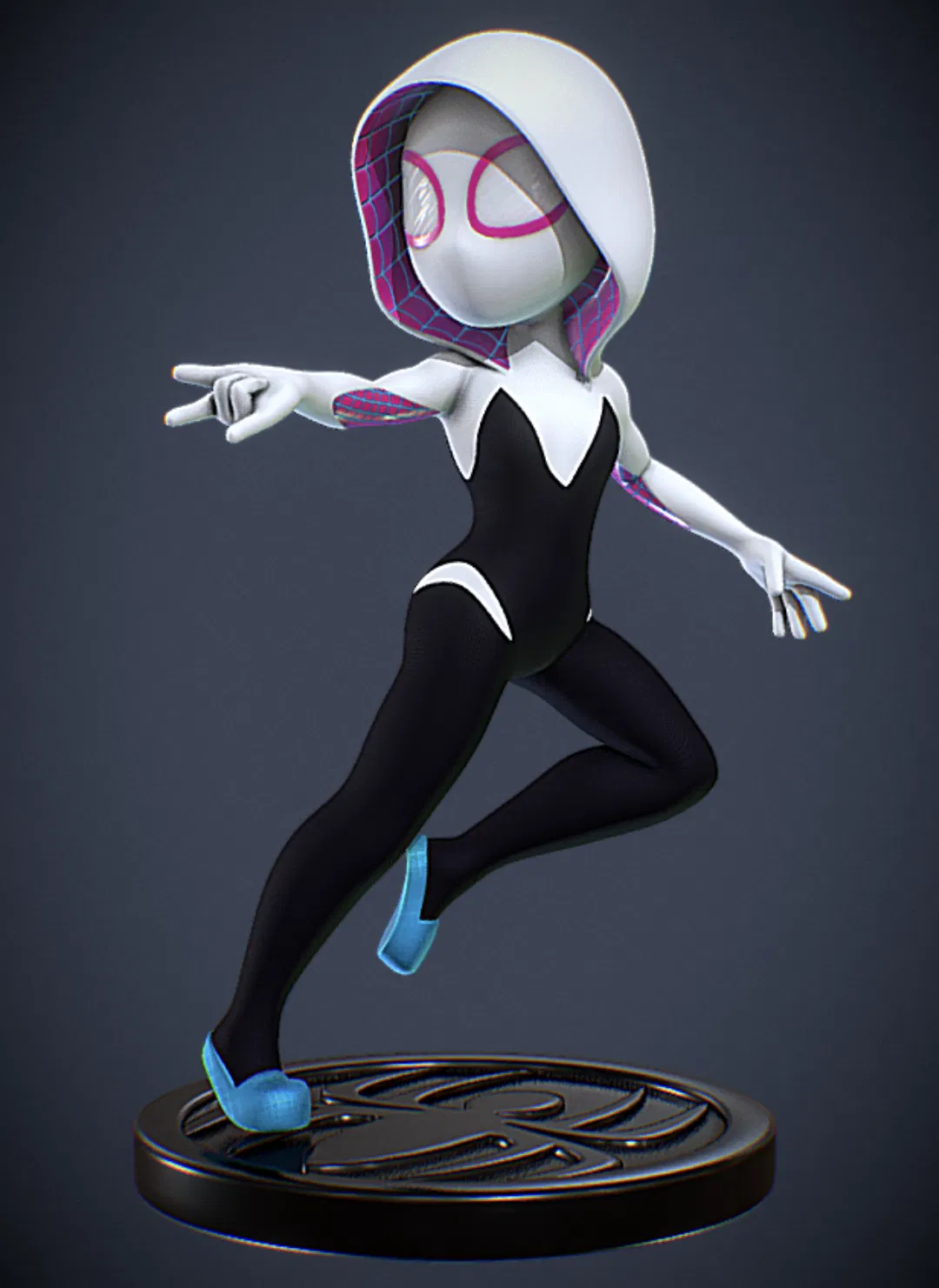 Mô hình 3D Spider Gwen, nhân vật quen thuộc trong vũ trụ Spider-Verse. Thích hợp để in ấn và trưng bày.