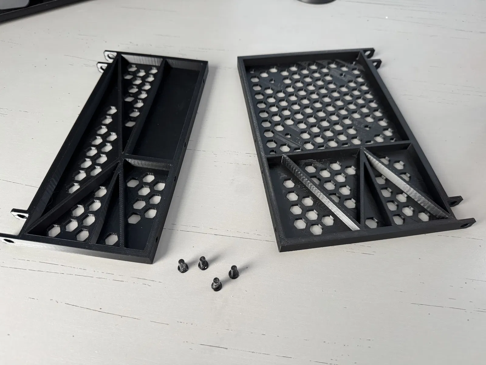 3. Mấy cái miếng này á, bạn có thể cắt trong slicer rồi gắn keo vô. Hoặc là, với mấy miếng cắt sẵn á, có bốn cái lỗ để bắt ốc. Lỗ này thì xài ốc M4 hoặc #8 nha.