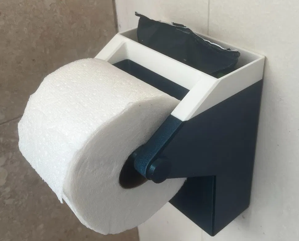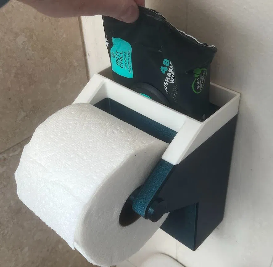 Giá đỡ giấy vệ sinh tiện dụng có thêm ngăn đựng khăn ướt luôn! Đựng tốt các loại giấy vệ sinh loại lớn, không thành vấn đề.