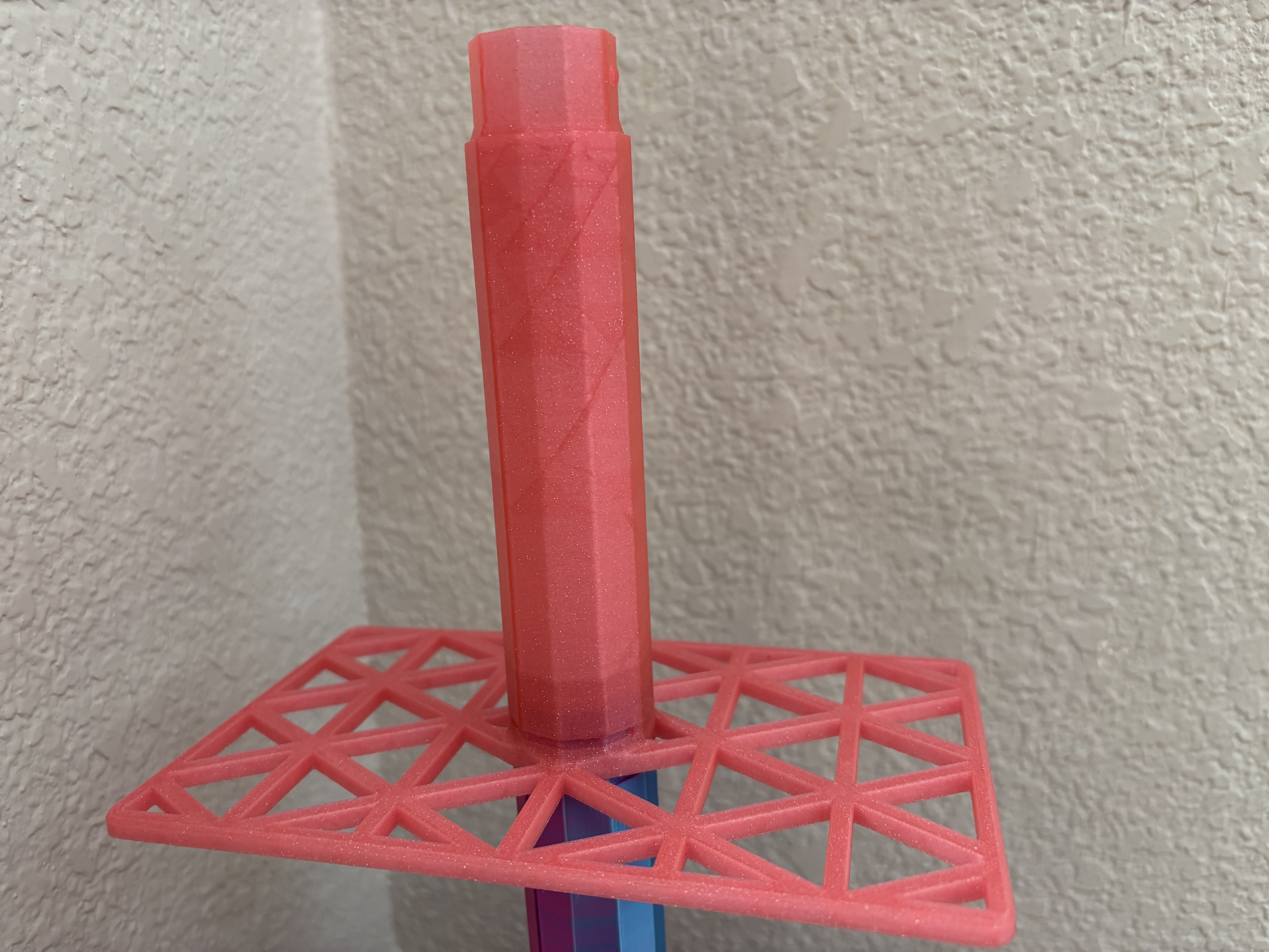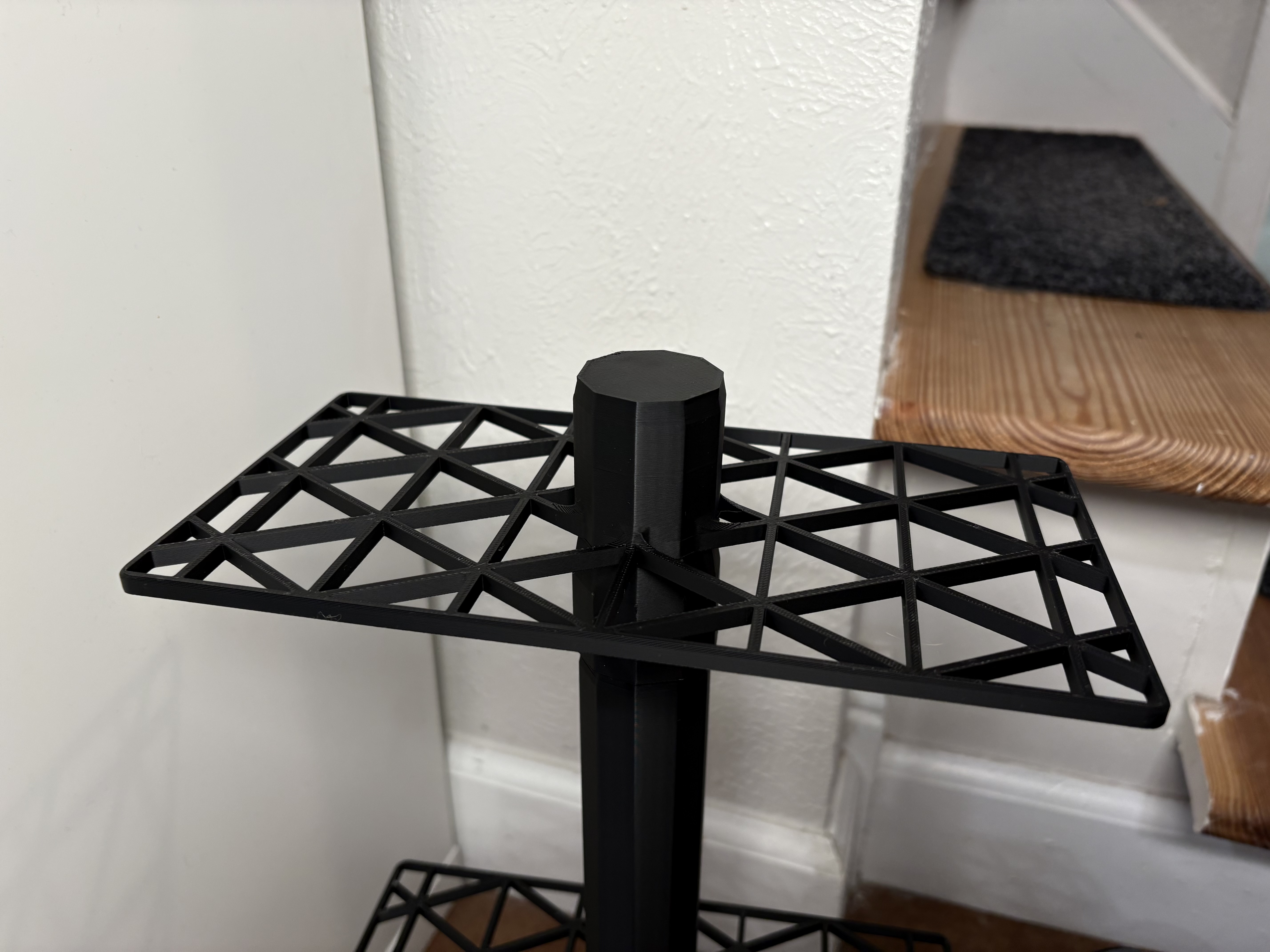 Cái bản tiêu chuẩn mà đa số mọi người sẽ in chỉ tốn có 2 tiếng hoặc hơn chút xíu trên máy Bambu, tốn dưới 2 đô tiền nhựa mà lại còn chắc hơn nhiều. Cái sàn thì vẫn còn mỏng, có thể bị oằn xuống với giày nặng, nhưng cái trụ thì cứng cáp hơn nhờ thiết kế tốt hơn.