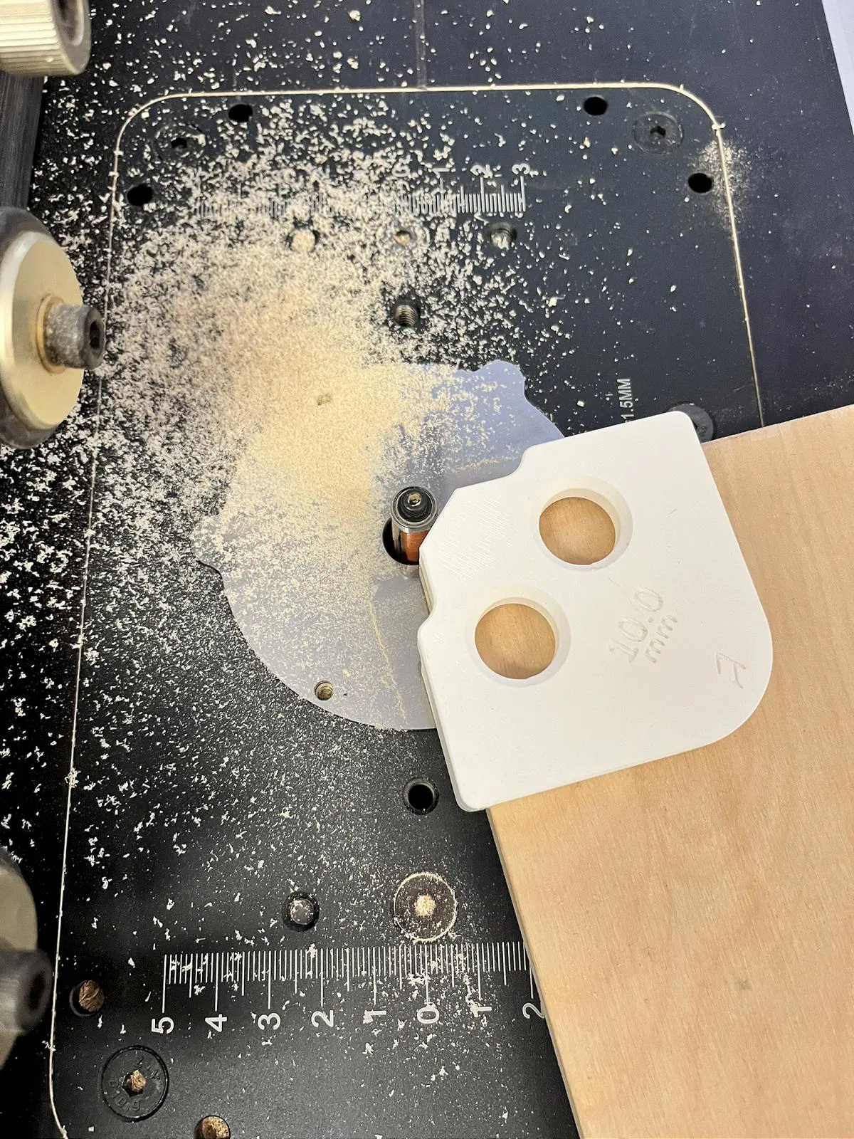 Dụng cụ để tạo vát góc cho router khi đặt trong bàn. Nếu anh em cần kích thước nào khác cứ nhắn tin mình làm cho nhé.