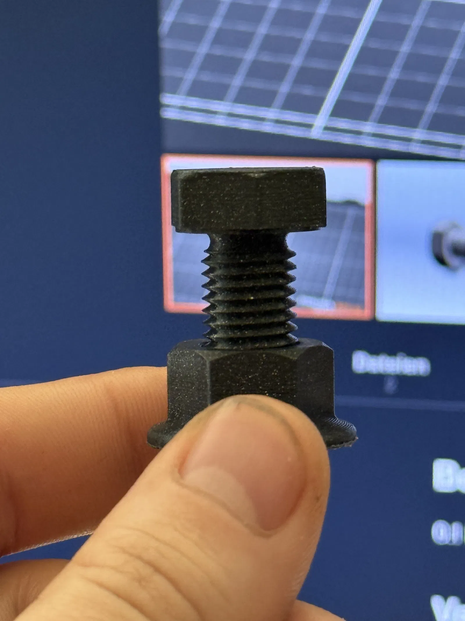 Bộ ốc và đai ốc này được tạo ra để kiểm tra và đánh dấu. Đây là ren M12 x 1,5 thực tế. Cập nhật: 08.01.2025. In thử nghiệm bằng PLA và ASA, ren khớp chính xác.