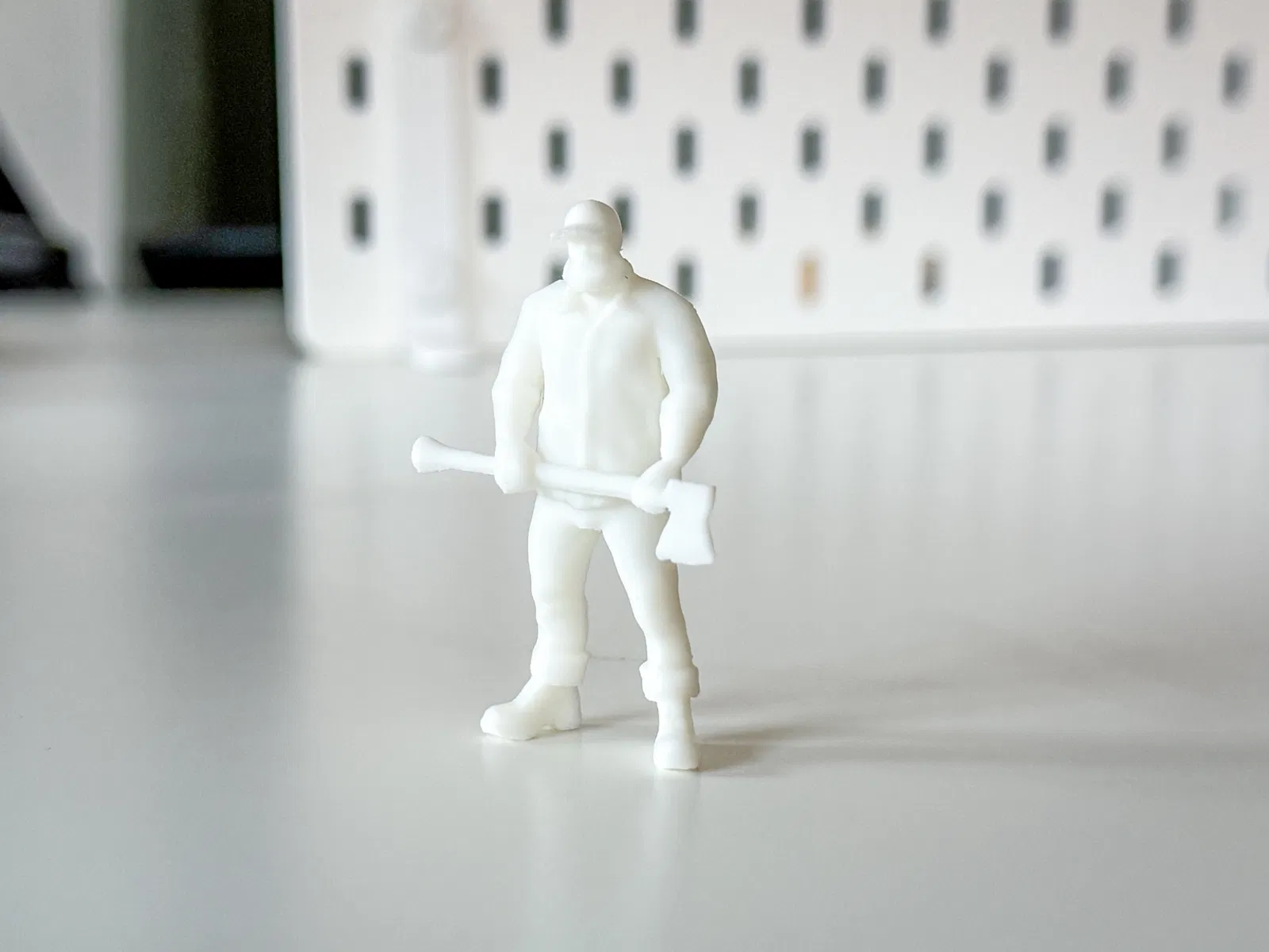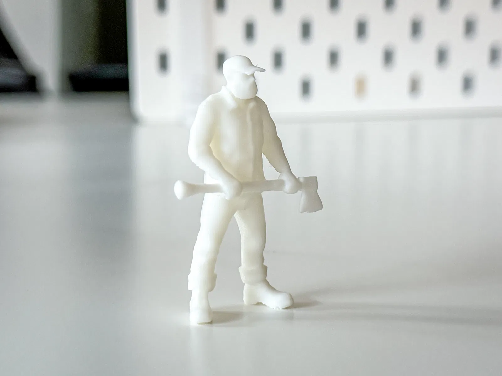 Tượng người tiều phu thu nhỏ cho mô hình tĩnh vật, mô hình kiến trúc hoặc tượng nhỏ. Người tiều phu mặc đồ lao động, phù hợp với các mô hình thiên nhiên, rừng núi. Có thể in với nhiều tỉ lệ khác nhau.