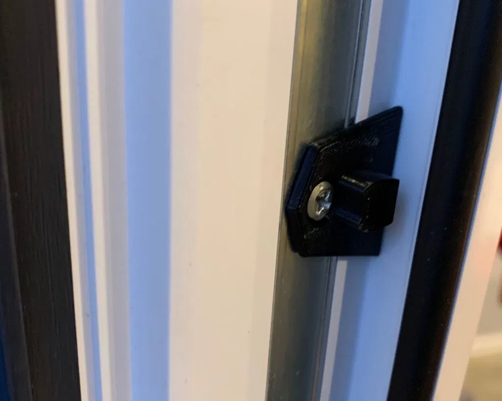 This is a simple door catch to keep unlocked patio or balcony doors closed.