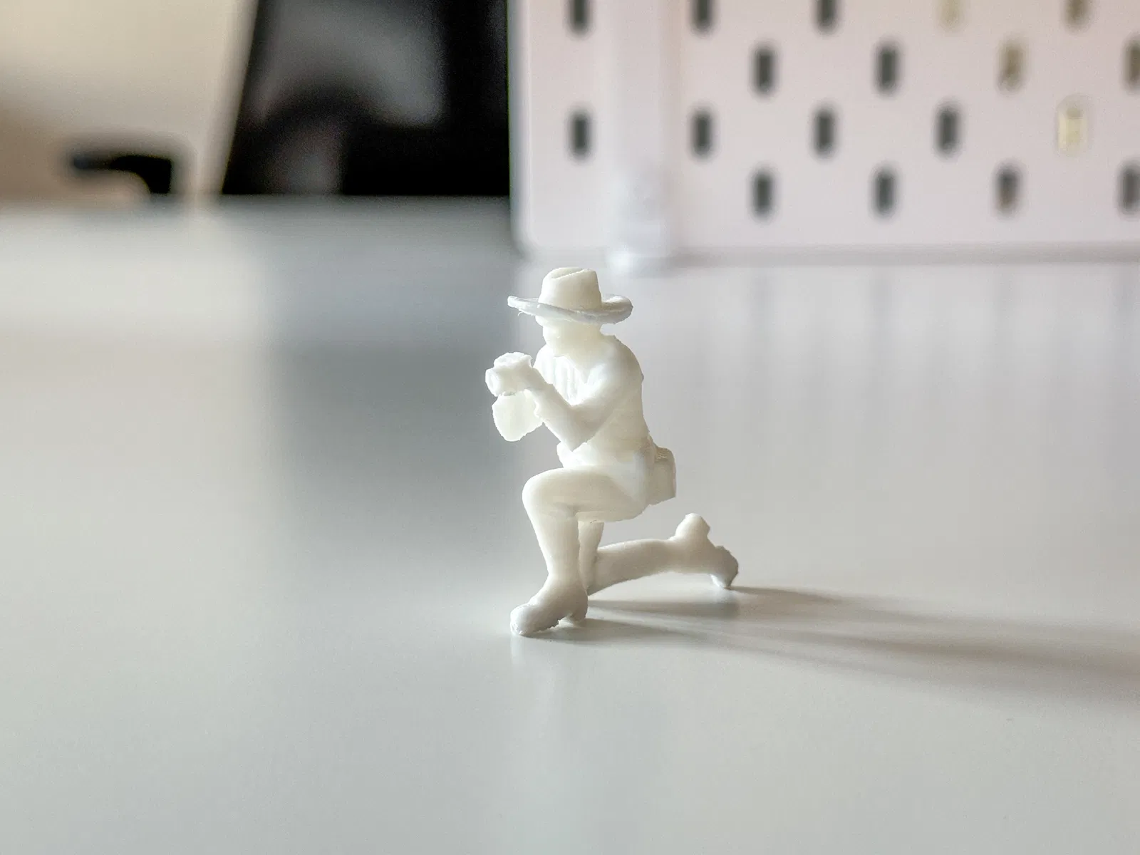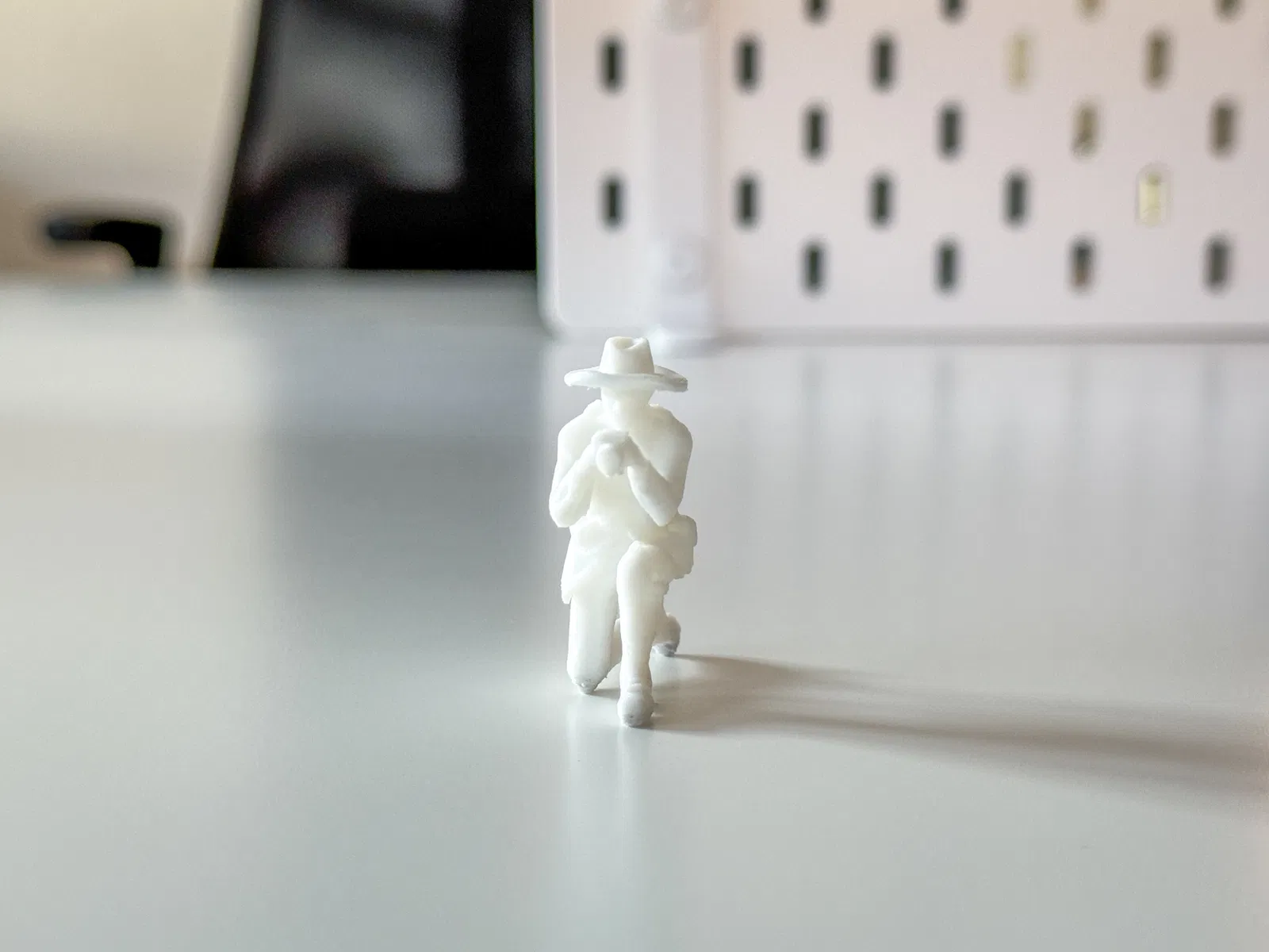 Mô hình thợ chụp ảnh hoặc khách du lịch thu nhỏ, lý tưởng cho diorama hoặc mô hình kiến trúc. Có thể in ở nhiều tỉ lệ khác nhau, chi tiết cao với PLA và layer height thấp. Lưu ý khi gỡ cây đỡ để bảo vệ chi tiết mũ.