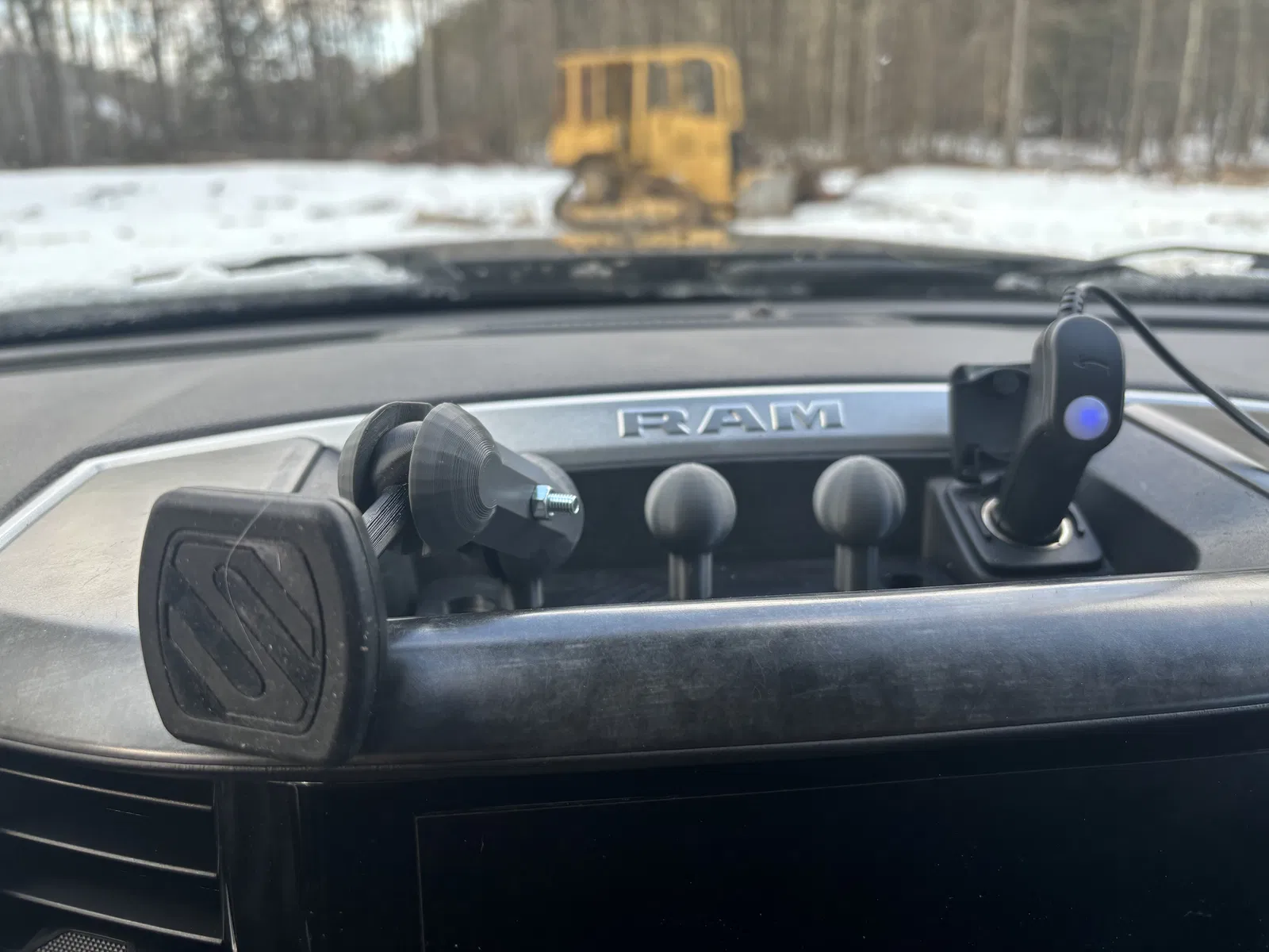 Chiếc xe tải mới cần một cái giá đỡ điện thoại mới. Gắn các giá đỡ bi Ram vào phần cứng xe có sẵn. Bản in bao gồm đế và trụ, bạn có thể kết nối các bộ phận gắn Ram khác vào đó. Đã cập nhật vật liệu và file .stl.