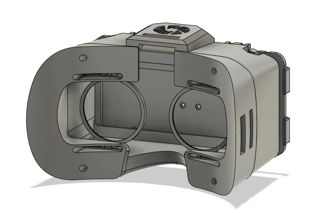 Kính FPV đơn giản để nhận video OpenIPC với điện thoại Android chạy PixelPilot ở chế độ VR. Thiết kế có ngăn chứa module wifi, lắp ráp bằng ốc M2.