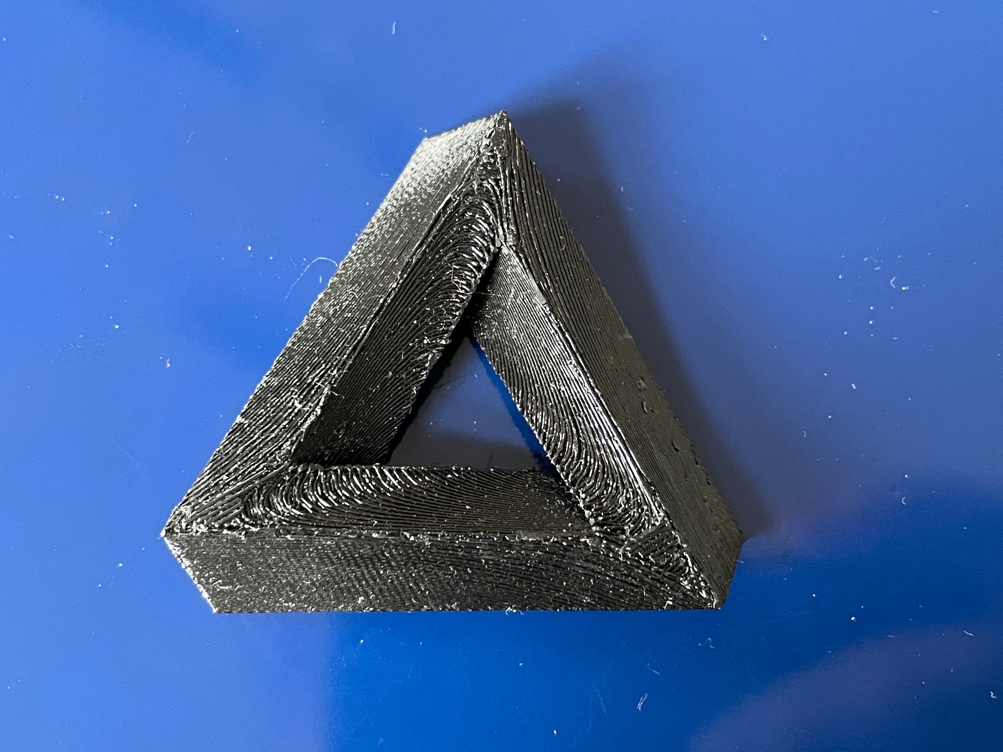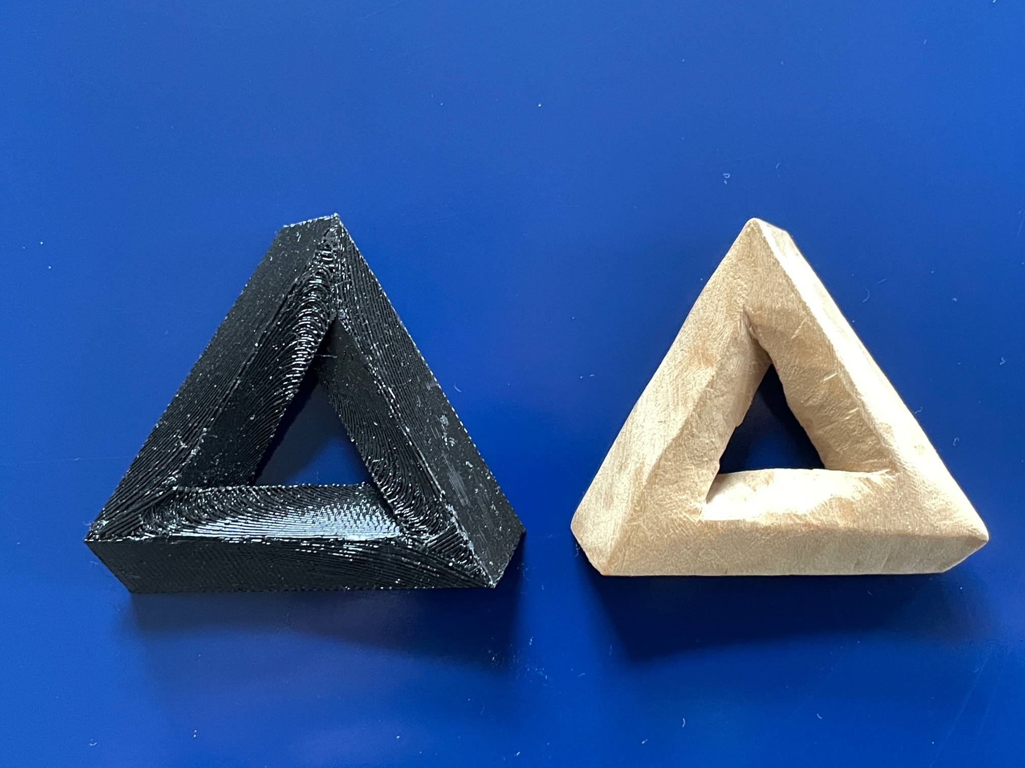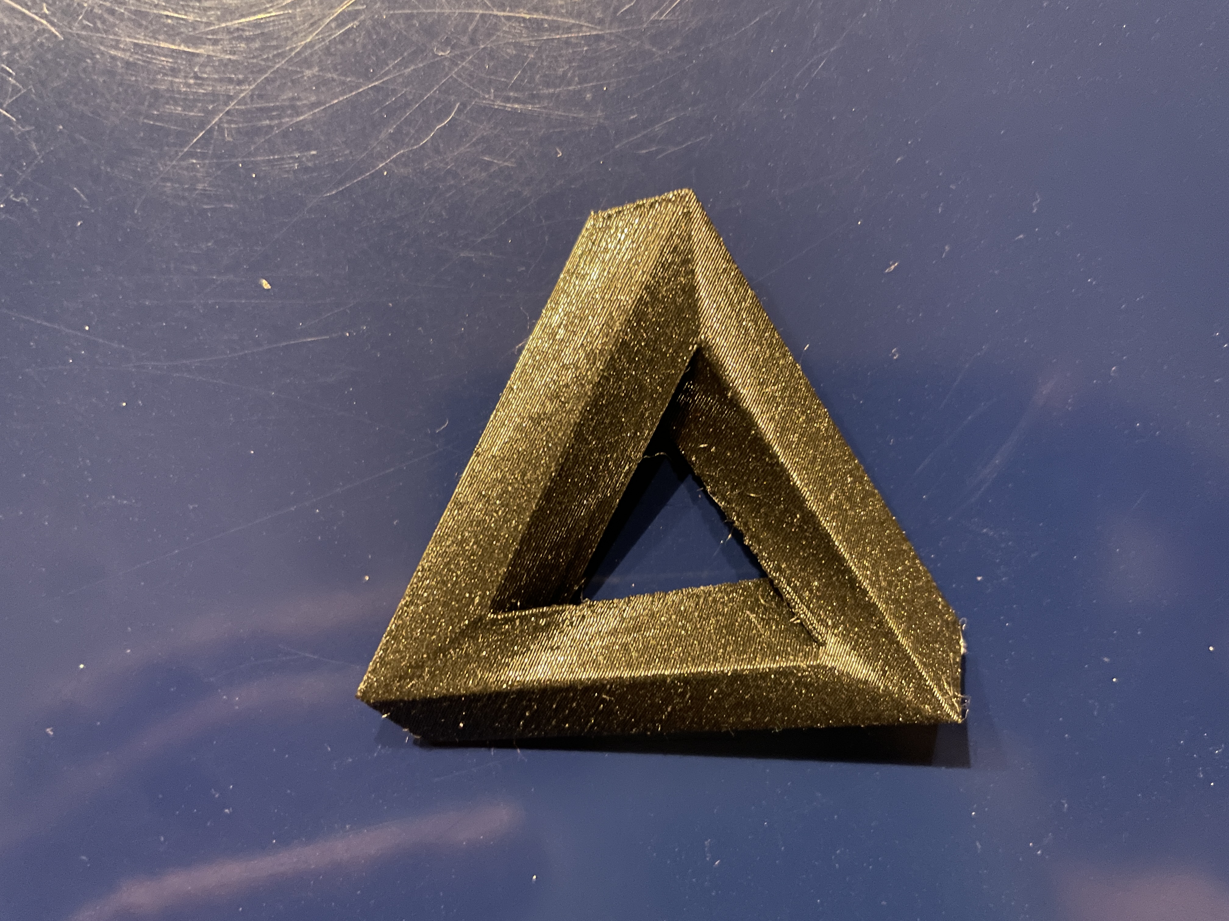 Mô hình tam giác Penrose với bề mặt cong, đường thẳng và không có góc vuông. Phiên bản mới có mặt sau phẳng, lỗ gắn nam châm, có thể in không cần support.