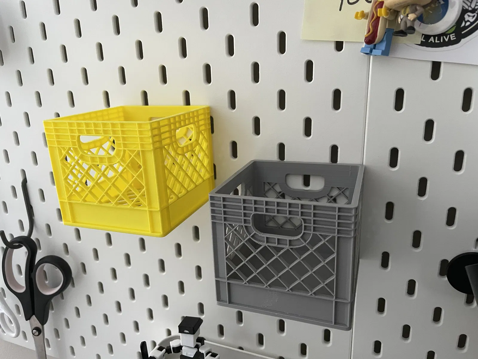 Tôi làm cái bản remix này để anh em có thể để cái thùng sữa lên bảng pegboard Skadis của IKEA nha. Có 2 lựa chọn: một cái có đáy kín (để đồ nhỏ không bị lọt ra ngoài) và một cái có đáy dạng truyền thống.