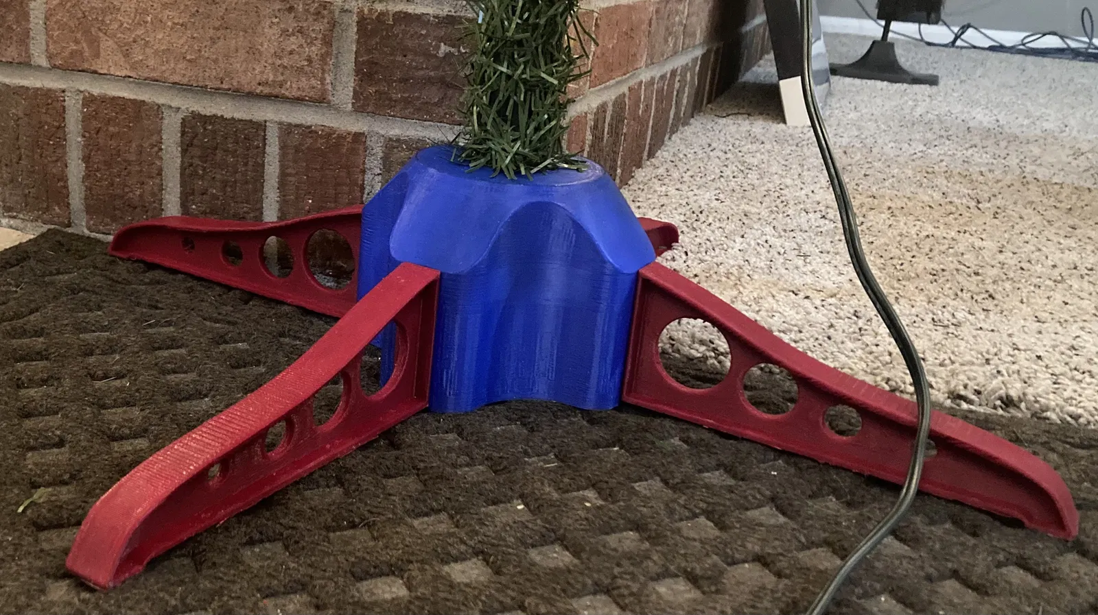Chân đế này được thiết kế cho cây thông giả với trục 32mm, có thể in thành ba phần riêng biệt. Đặc biệt, có thêm tùy chọn gắn bánh xe xoay giúp việc di chuyển cây dễ dàng hơn.