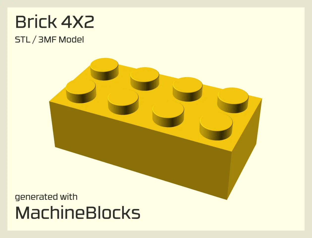Các file STL đính kèm được tạo ra từ Máy tạo gạch Trực tuyến MachineBlocks mà bạn có thể chạy trực tiếp trên trình duyệt mà không cần cài đặt. Cái này cho phép bạn tạo ra đủ loại gạch LEGO® tương thích với nhiều kích cỡ và kiểu dáng khác nhau.