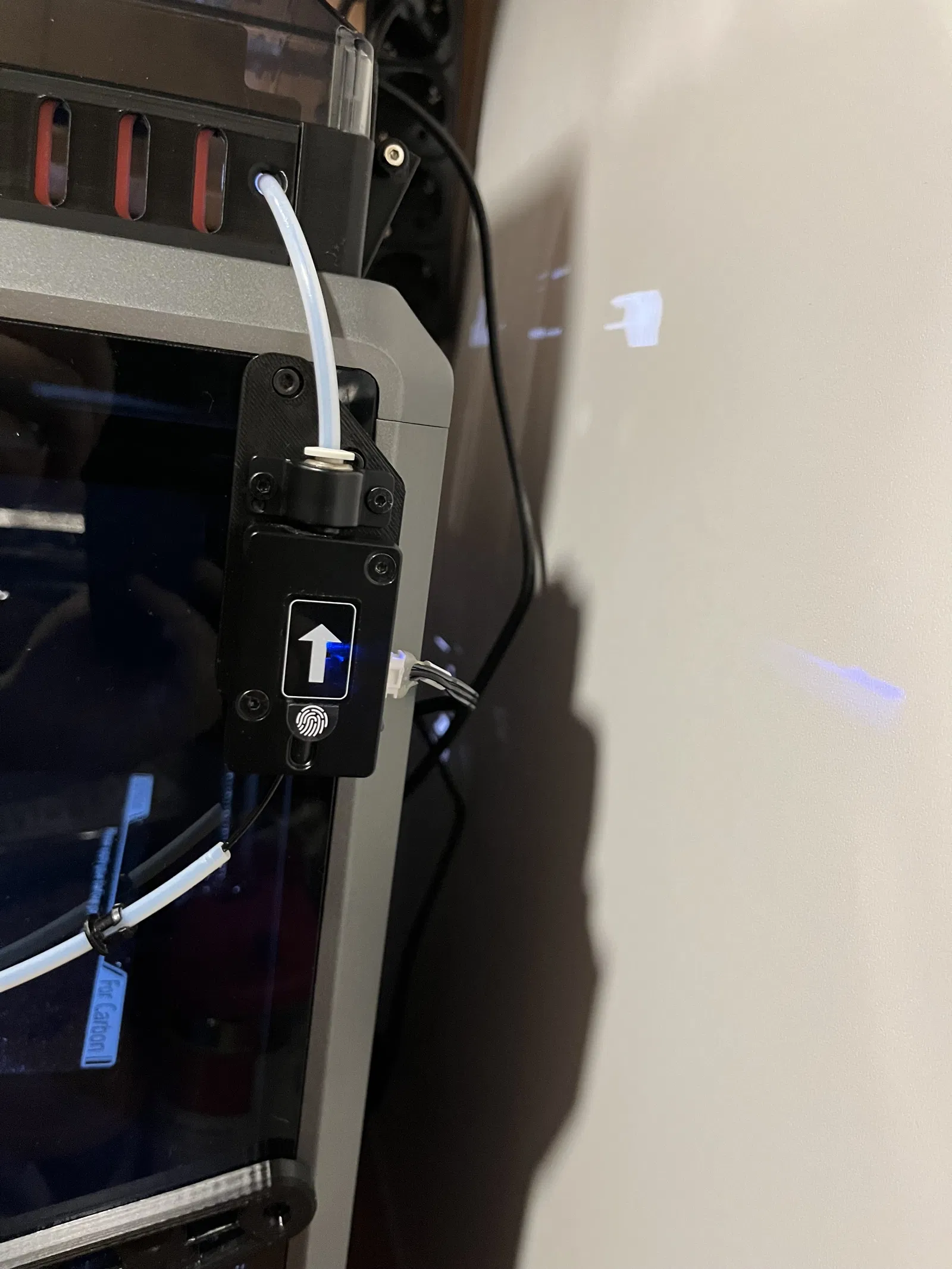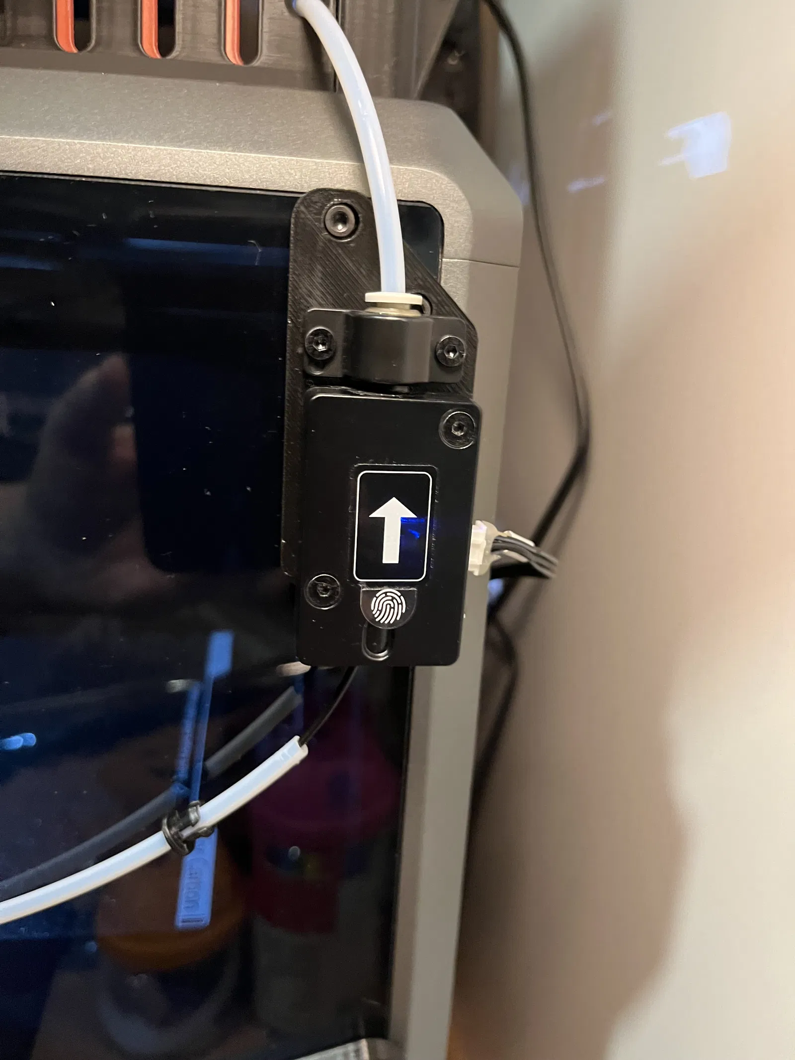 Cái đế này cho phép bạn gắn cảm biến hết sợi (Filament runout sensor) ở phía bên phải của máy Creality K1C, giúp bạn dễ dàng sử dụng cuộn dây tóc ở hai bên máy thay vì phía sau.