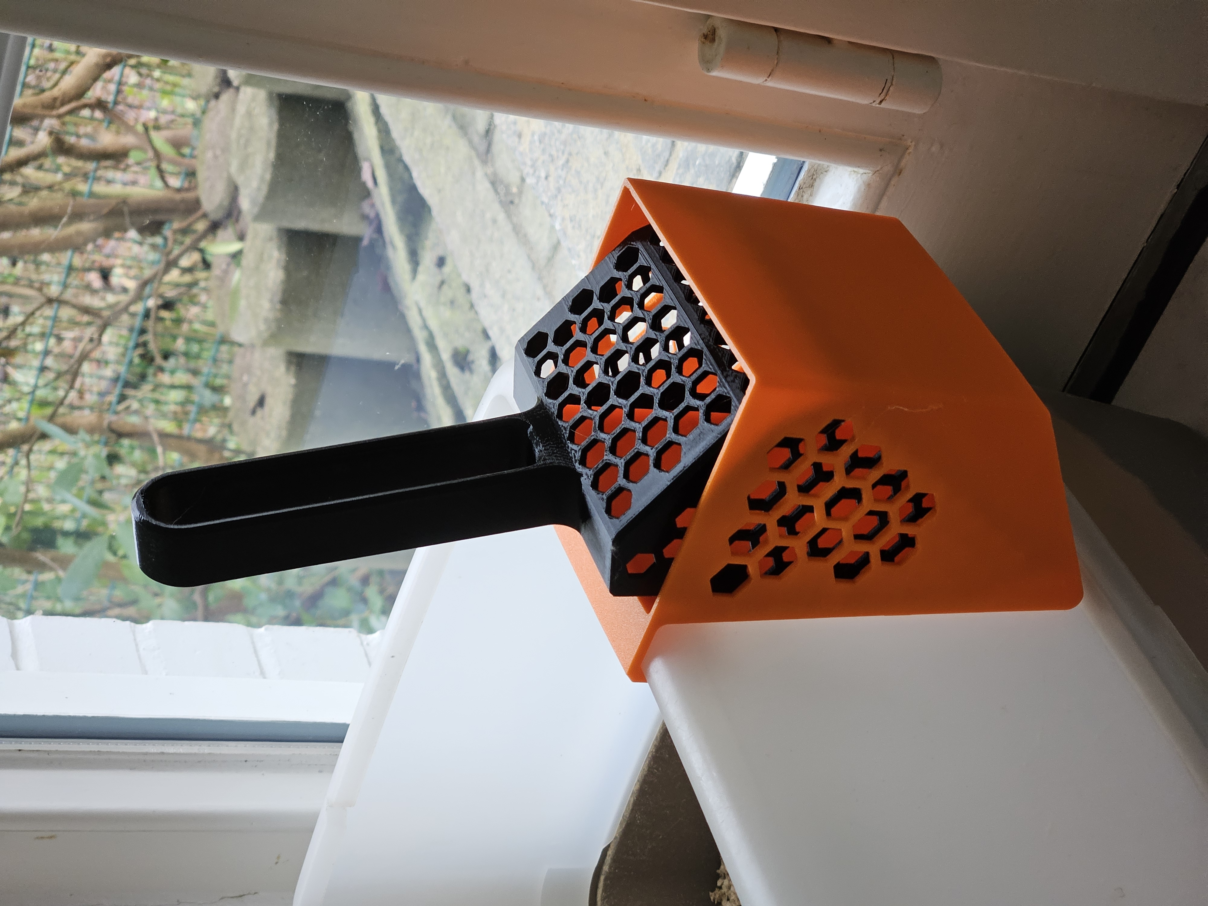 Tui đã xài cái “Cat litter scoop” của bạn @EvaMika_51631 này mấy tháng rồi. Bạn EvaMika cho ra mắt cái scoop này với hai phiên bản: một phiên bản gồm hai phần phải dán lại sau khi in, và một phiên bản hoàn chỉnh in ra là xài được liền. Bạn có thể tìm thấy nó ở đây: