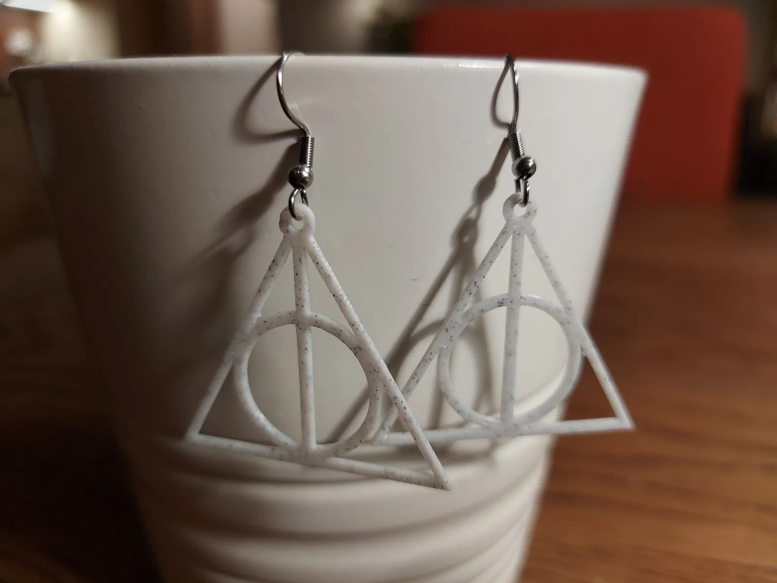 Bộ bông tai lấy cảm hứng từ Bảo Bối Tử Thần trong Harry Potter. In cực nhanh chỉ 10 phút, dùng PLA. Món quà ý nghĩa cho fan Harry Potter. Khám phá thêm các mẫu trang sức khác tại đây!