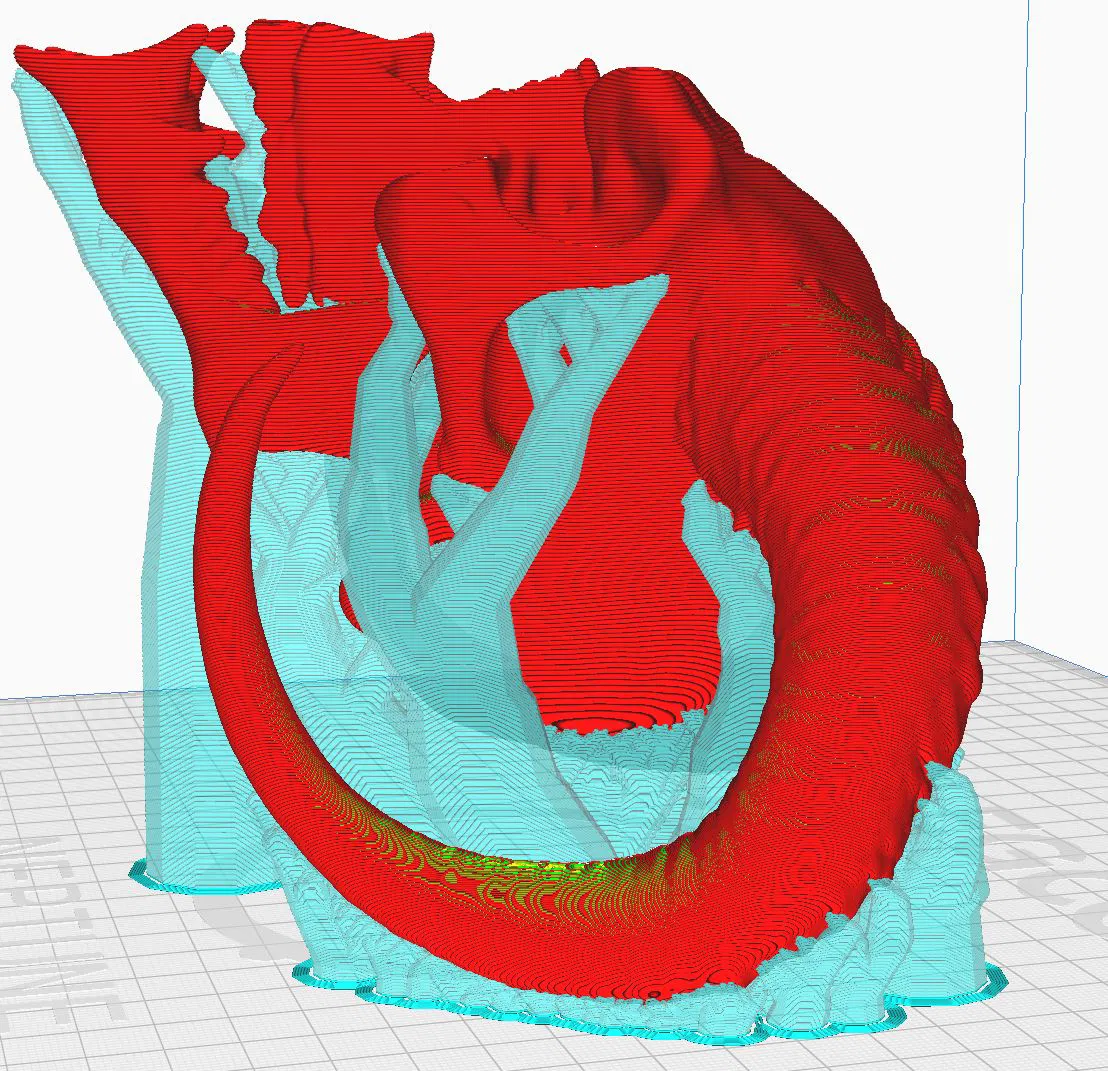 - Plugin auto orientation trong Cura → Mình có thêm một hình từ Cura khi mình slice Skull 1 ở scale 200% và dùng auto orientation. Việc này giúp tiết kiệm 1 tiếng rưỡi thời gian in.