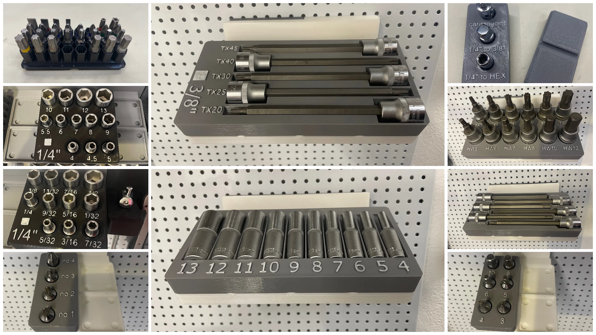 Mình đã dùng các khay Gridfinity để làm các tool organizer này.