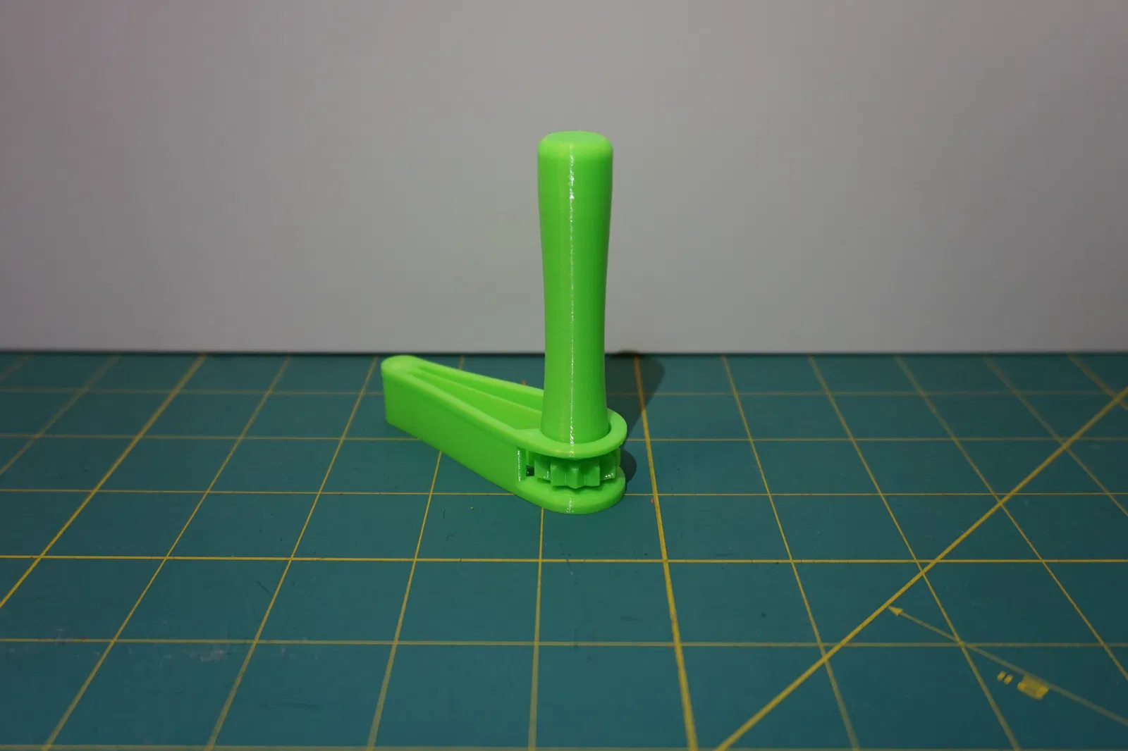 - In phần đế lớn áp phẳng xuống build plate, dựng phần tay cầm thẳng đứng