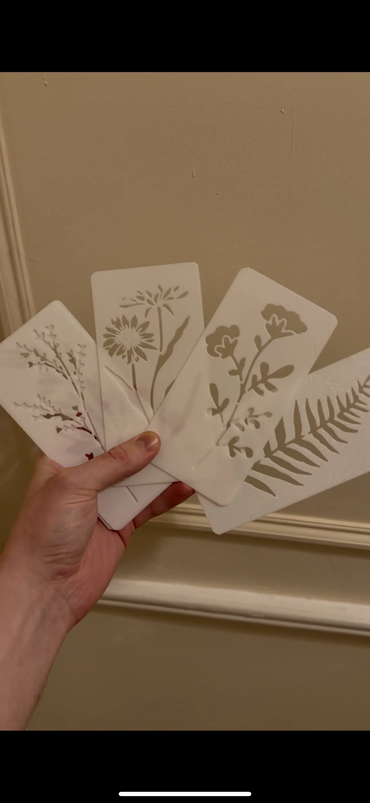 Bộ Flower Stencils để tạo hoạ tiết hoa trang trí khi trét filler/mud lên tường hoặc trần. Kích thước gợi ý 76x150x0.75mm, có thể scale dễ trong Bambu Studio. Phù hợp in tại nhà và thử nhiều loại filler khác nhau.