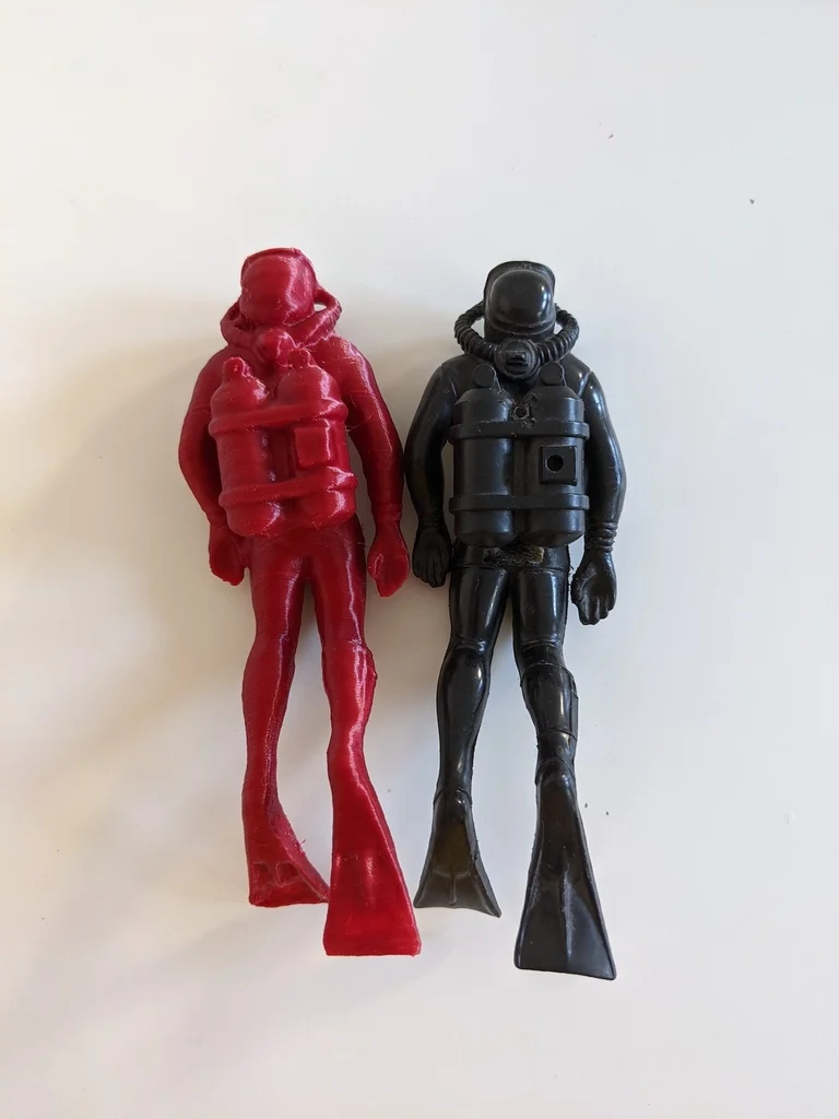 Mẫu thợ lặn Scuba [PHIÊN BẢN CŨ] này đã lỗi thời—bạn nên xem bản mới theo link kèm theo. Model được dựng lại từ tượng nhựa thật bằng photogrammetry và chỉnh sửa trong Blender để dễ 3D print.