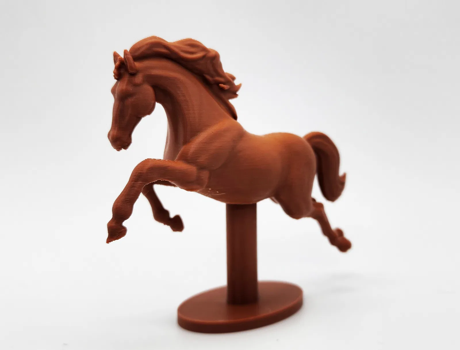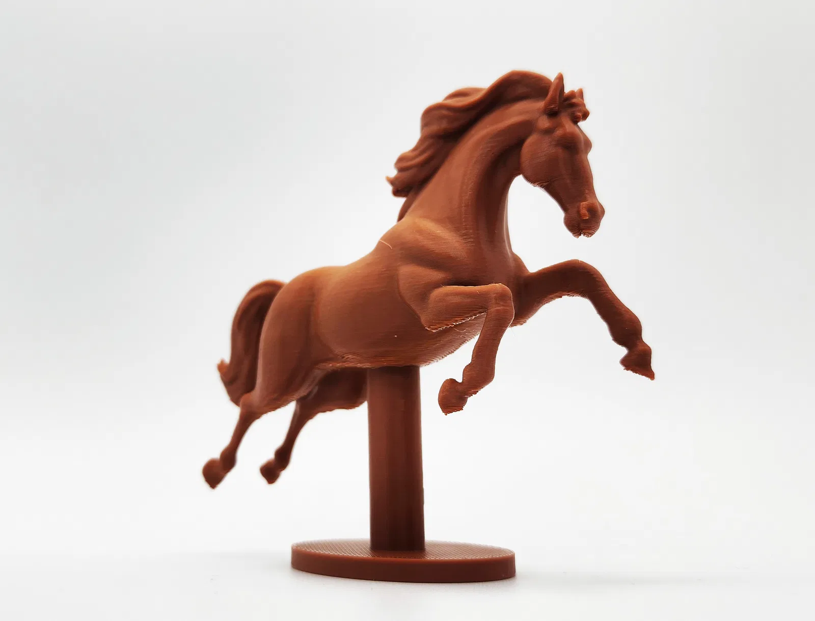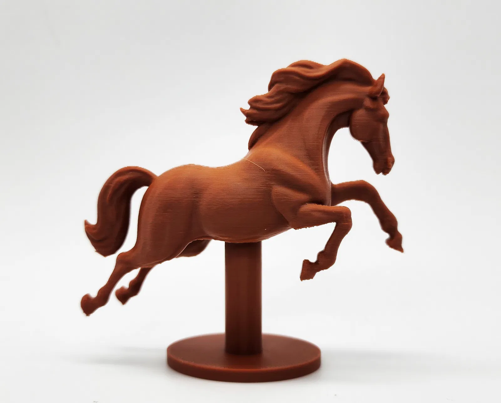 Mẫu tượng ngựa nhảy vọt, có phiên bản kèm đế và file STL thô để bạn tùy chọn khi in. Khuyến nghị dùng Tree Supports và chỉ đặt supports trên build plate để in sạch và dễ gỡ.
