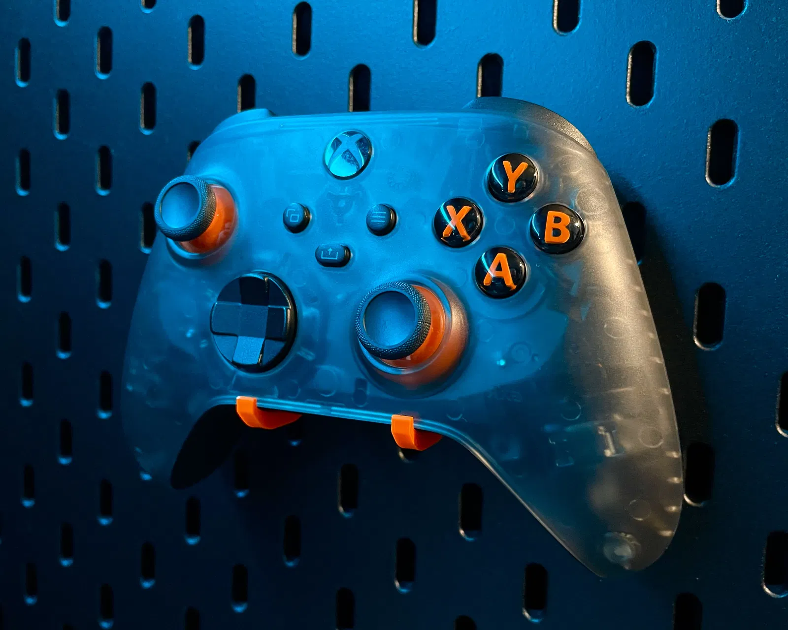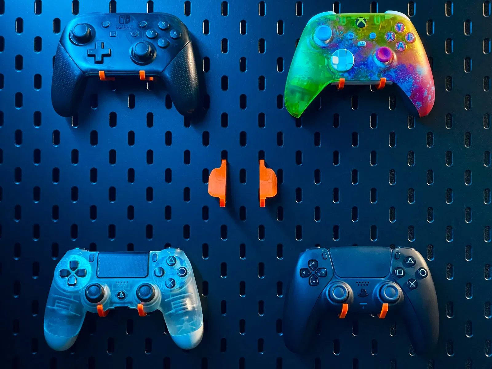 Mount treo tay cầm cho pegboard SKADIS dạng low profile, ôm khít (perfect fit) dựa trên 3D scan. Hỗ trợ XBOX Series, Dualsense (PS5), Dualshock 4 (PS4), Switch Pro và một số 8Bitdo. In nhanh, không cần support.
