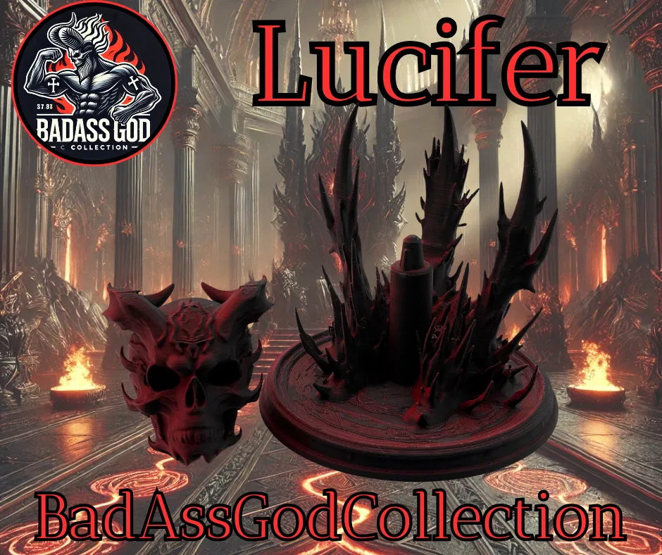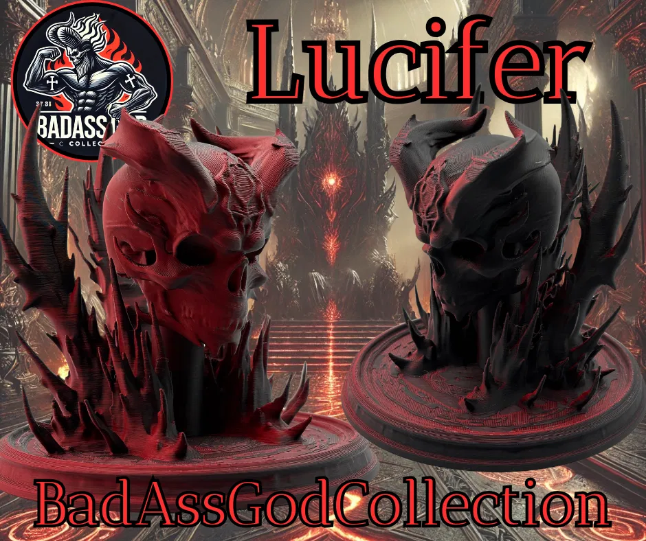 Mẫu 3D đầu lâu Lucifer kèm bệ đỡ trong BadAssGodCollection. In thử trên Prusa MK4 và Bambu P1S với PLA, có thể scale, cần supports dạng organic (chỉ trên plate). Phù hợp trưng bày chủ đề fantasy/hell.