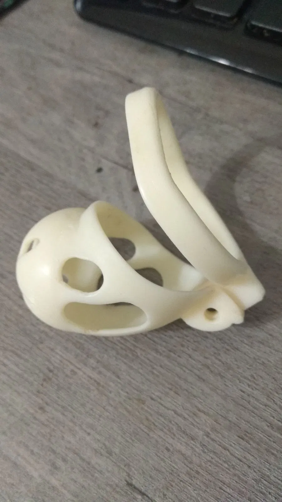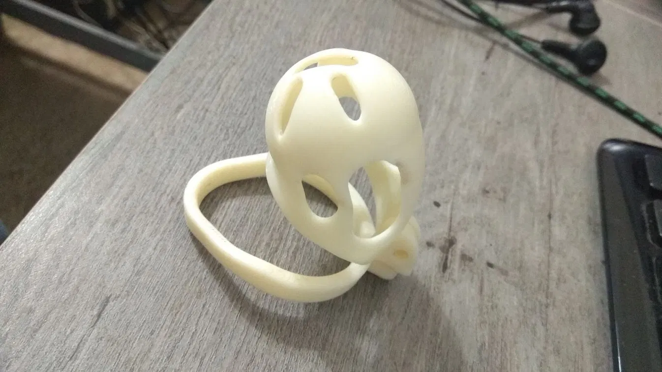 Đây là một two piece chastity cage gồm 2 phần, dùng với một ổ khóa nhỏ (padlock). Mình làm mẫu này cho người khác nên bản thân chưa test thực tế. Hiện mình mới làm đúng 1 size, thuộc dạng nhỏ; nhưng trong tương lai chắc mình sẽ thử làm thêm vài size nữa. Rất mong nhận được góp ý, cảm ơn.