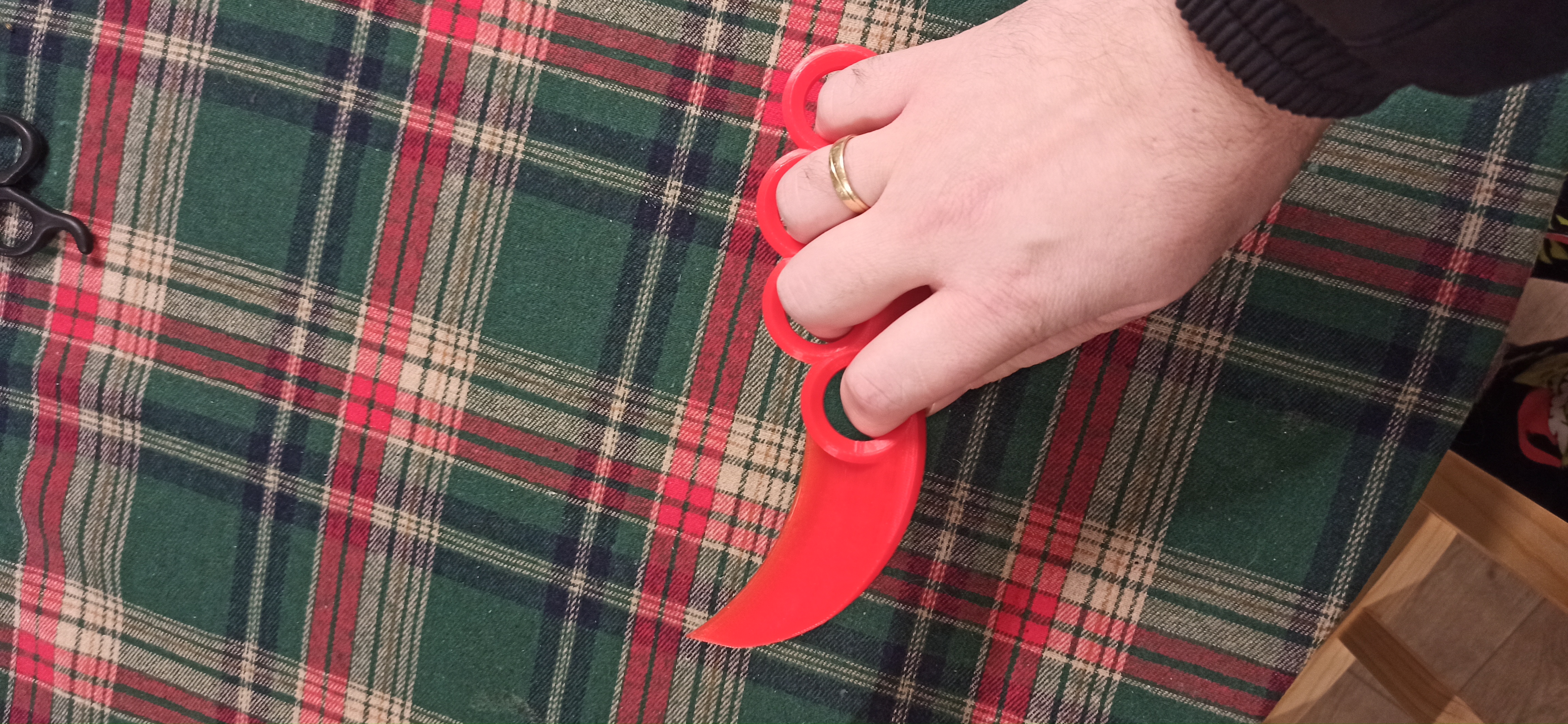 Mẫu “BRASS KNUCKLES KNIFE - BOX OPENER - BOX CUTTER” dài khoảng 145 mm, cầm vừa tay cỡ trung. Dùng để rọc/mở thùng hoặc làm món đồ chơi trưng bày trong bộ sưu tập. Tải về in thử và góp ý cho V2.0.