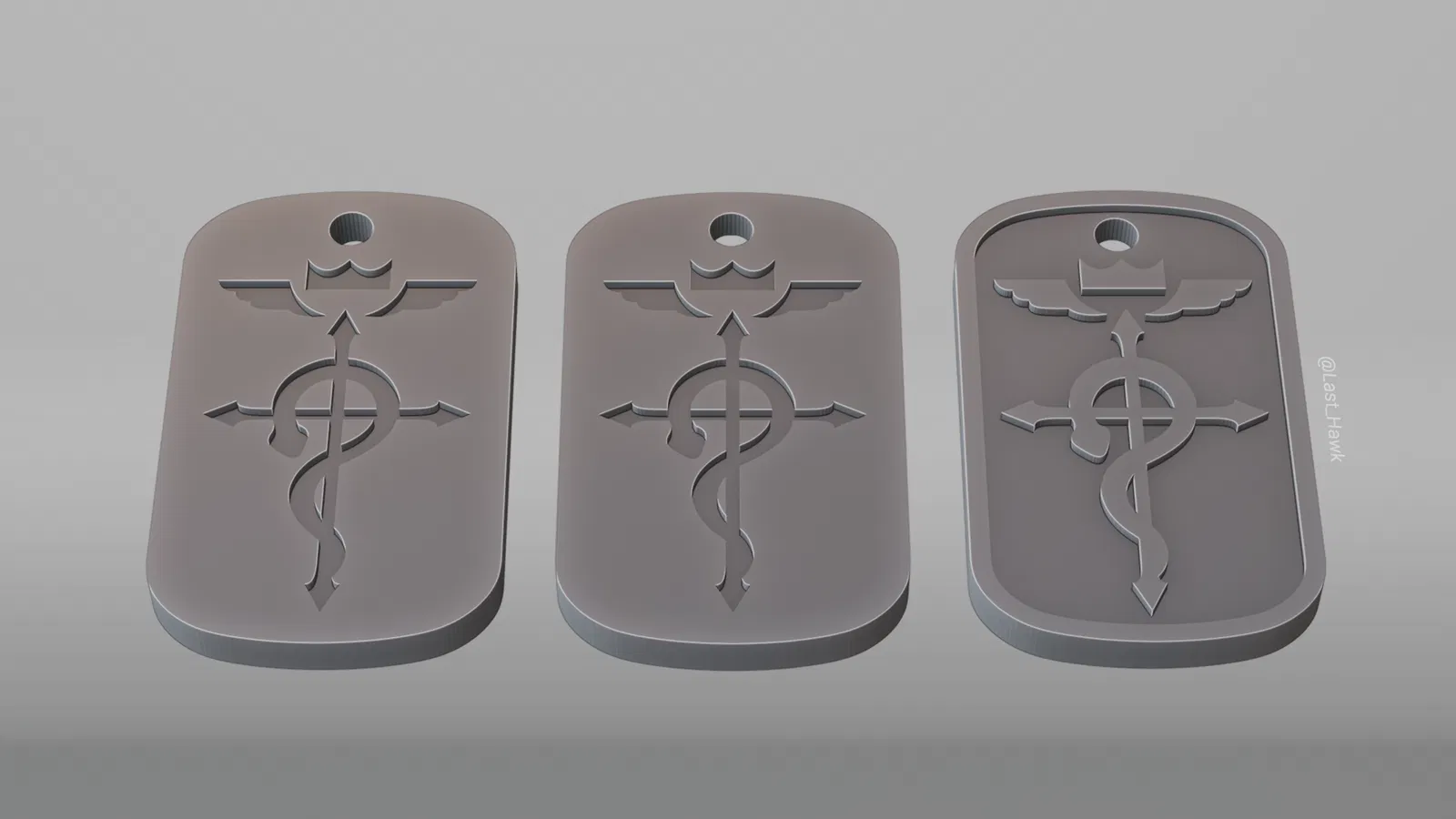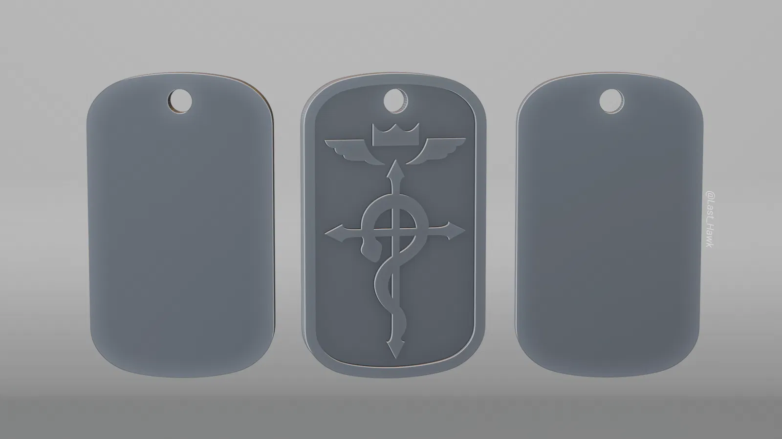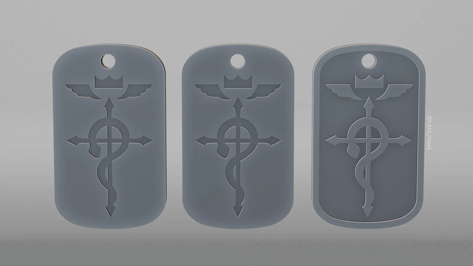 Dogtag Flamel lấy cảm hứng từ anime Fullmetal Alchemist, có biểu tượng giả kim dạng thập giá quấn rắn, kèm cánh và vương miện. Gồm 3 bản Type A (hai mặt), Type B/C (một mặt); STL và Blend.