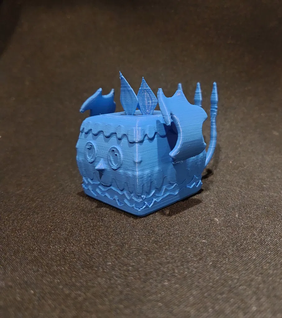 Mẫu này làm khá là khoai. Mình tưởng cái đuôi mảnh sẽ gây vấn đề khi in, nhưng in phát ăn ngay lần đầu, và thằng nhỏ nhà mình mê Blox Fruits nói là đẹp.