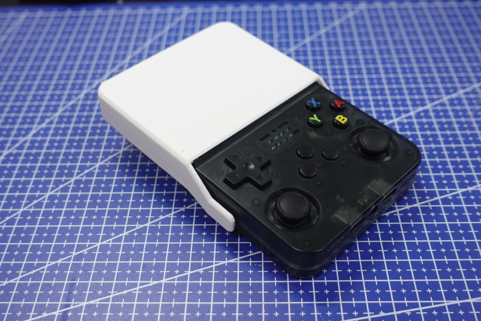 Nắp che bảo vệ màn hình dạng flip cover cho máy chơi game cầm tay R36S. Khuyến nghị in úp mặt trên xuống print bed, dùng brim và skirt để bám bàn tốt hơn; có thể lót nỉ bên trong để tránh trầy.